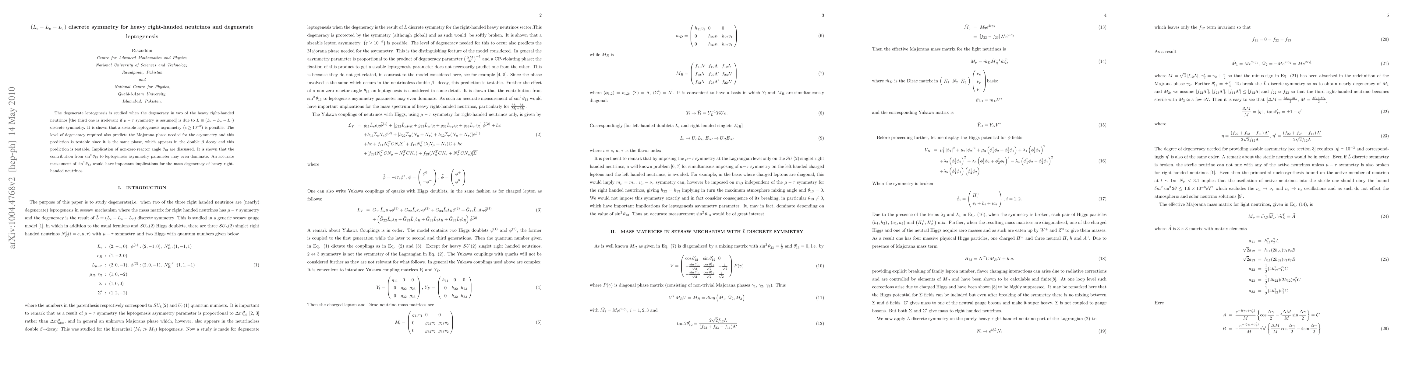 This paper explores degenerate leptogenesis under the $(L_e-L_{\mu}-L_{\tau})$ discrete symmetry for heavy right-handed neutrinos, showing that it can yield a significant leptogenesis asymmetry. The required level of degeneracy predicts a specific Majorana phase, which is testable in double $\beta$-decay experiments.