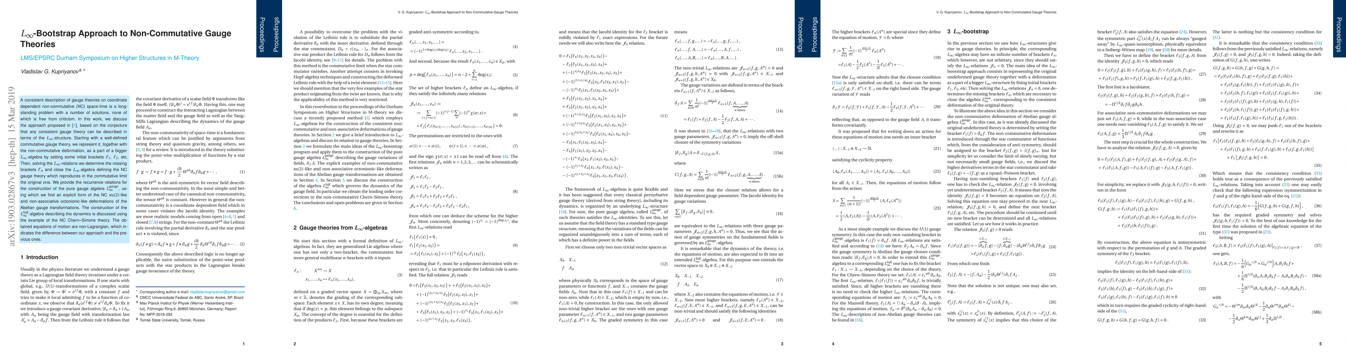 This paper proposes an $L_\infty$-bootstrap method to describe gauge theories on non-commutative spacetime, constructing an $L_\infty$-algebra to encapsulate both commutative and non-commutative deformations. The approach yields non-Lagrangian equations of motion, distinguishing it from previous methods.