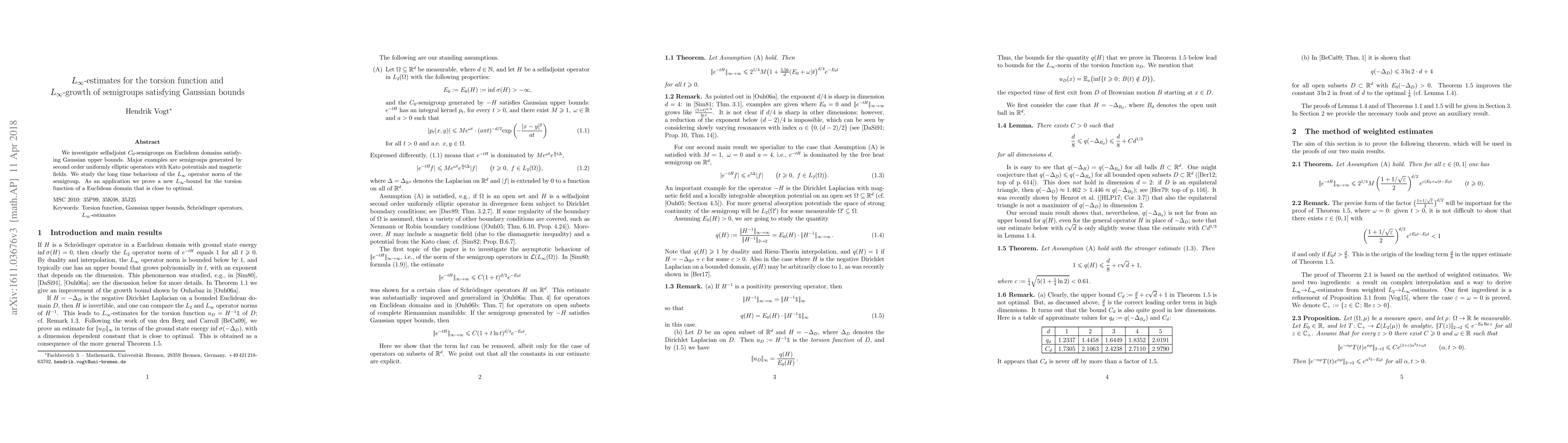 We investigate selfadjoint $C_0$-semigroups on Euclidean domains satisfying Gaussian upper bounds. Major examples are semigroups generated by second order uniformly elliptic operators with Kato potentials and magnetic fields. We study the long time behaviour of the $L_\infty$ operator norm of the semigroup. As an application we prove a new $L_\infty$-bound for the torsion function of a Euclidean domain that is close to optimal.
