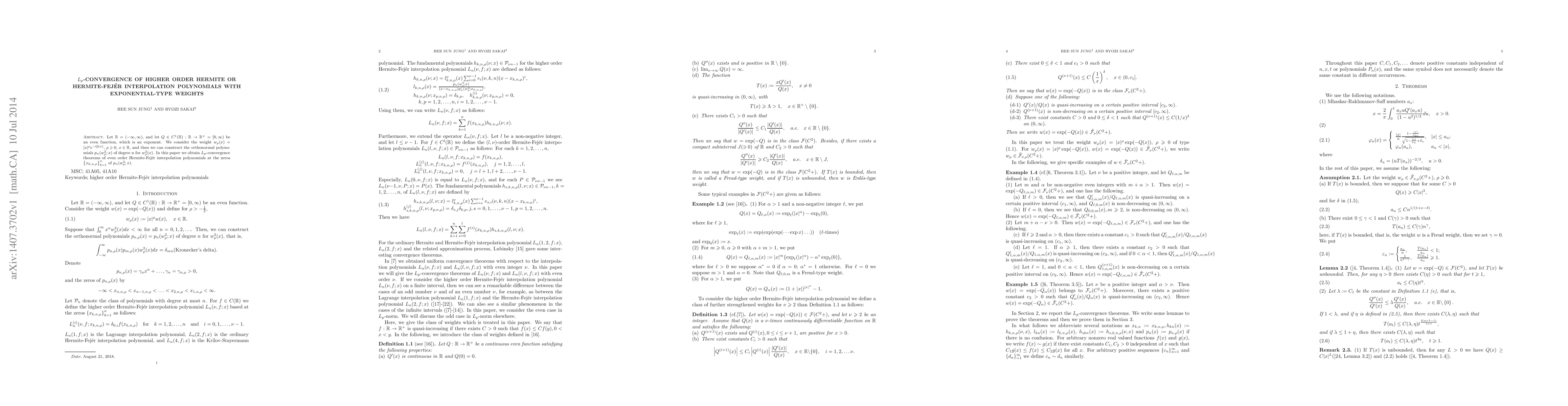 Let $\mathbb{R}=(-\infty,\infty)$, and let $Q\in C^1(\mathbb{R}): \mathbb{R}\rightarrow \mathbb{R^+}=[0,\infty)$ be an even function, which is an exponent. We consider the weight $w_\rho(x)=|x|^{\rho} e^{-Q(x)}$, $\rho\geqslant 0$, $x\in \mathbb{R}$, and then we can construct the orthonormal polynomials $p_{n}(w_\rho ^2;x)$ of degree n for $w_\rho ^2(x)$. In this paper we obtain $L_p$-convergence theorems of even order Hermite-Fej\'er interpolation polynomials at the zeros $\left\{x_{k,n,\rho}\right\}_{k=1}^n$ of $p_{n}(w_\rho ^2;x)$.