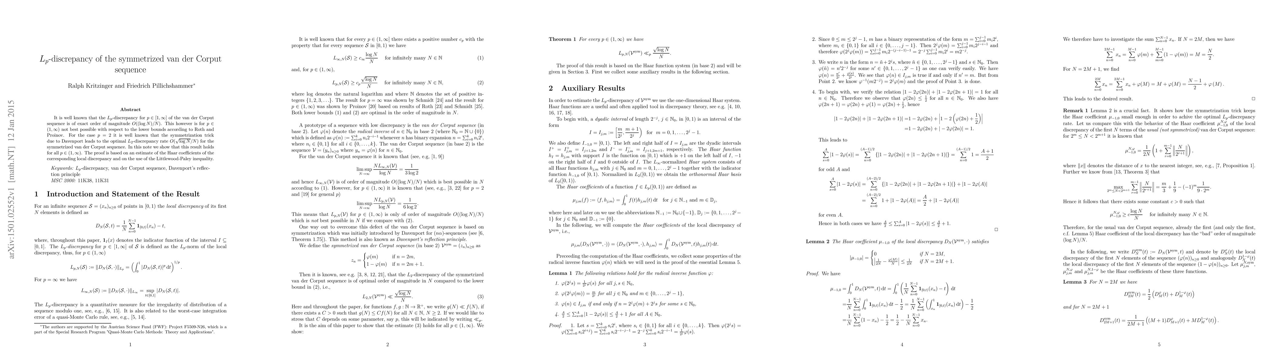 This paper demonstrates that the symmetrized van der Corput sequence achieves the optimal $L_p$-discrepancy rate of $O(\sqrt{\log N}/N)$ for all $p \in (1,\infty)$, extending the known result for $p=2$ to all such $p$. The proof utilizes Haar coefficients and the Littlewood-Paley inequality.