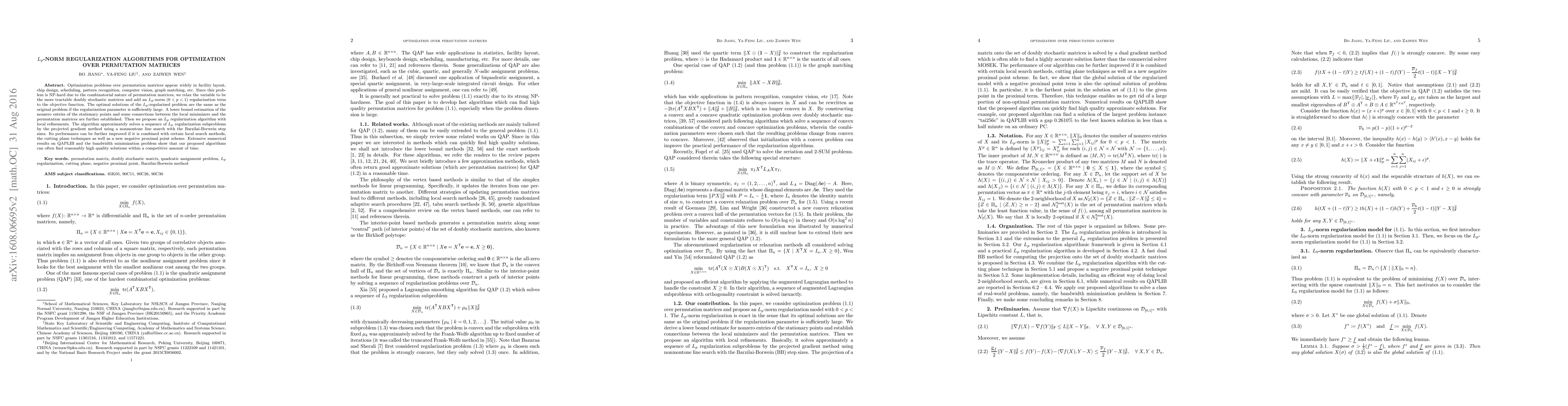 Optimization problems over permutation matrices appear widely in facility layout, chip design, scheduling, pattern recognition, computer vision, graph matching, etc. Since this problem is NP-hard due to the combinatorial nature of permutation matrices, we relax the variable to be the more tractable doubly stochastic matrices and add an $L_p$-norm ($0 < p < 1$) regularization term to the objective function. The optimal solutions of the $L_p$-regularized problem are the same as the original problem if the regularization parameter is sufficiently large. A lower bound estimation of the nonzero entries of the stationary points and some connections between the local minimizers and the permutation matrices are further established. Then we propose an $L_p$ regularization algorithm with local refinements. The algorithm approximately solves a sequence of $L_p$ regularization subproblems by the projected gradient method using a nonmontone line search with the Barzilai-Borwein step sizes. Its performance can be further improved if it is combined with certain local search methods, the cutting plane techniques as well as a new negative proximal point scheme. Extensive numerical results on QAPLIB and the bandwidth minimization problem show that our proposed algorithms can often find reasonably high quality solutions within a competitive amount of time.