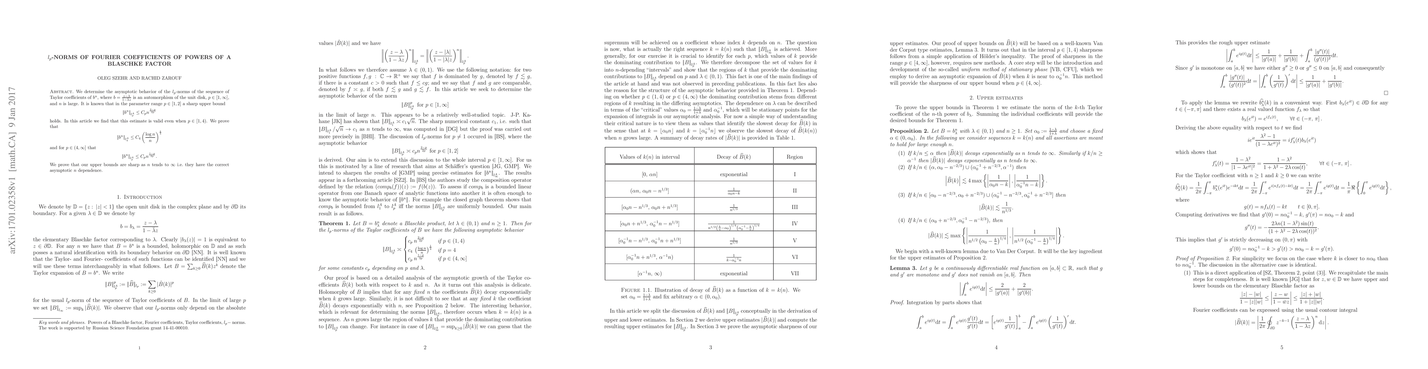 The paper studies the $l_{p}$-norms of Fourier coefficients of powers of a Blaschke factor, finding sharp upper bounds for $p$ in $[1,4)$ and $(4,rac{ ext{infinite}}{} ext{]}$, with correct asymptotic behavior as n tends to infinity.