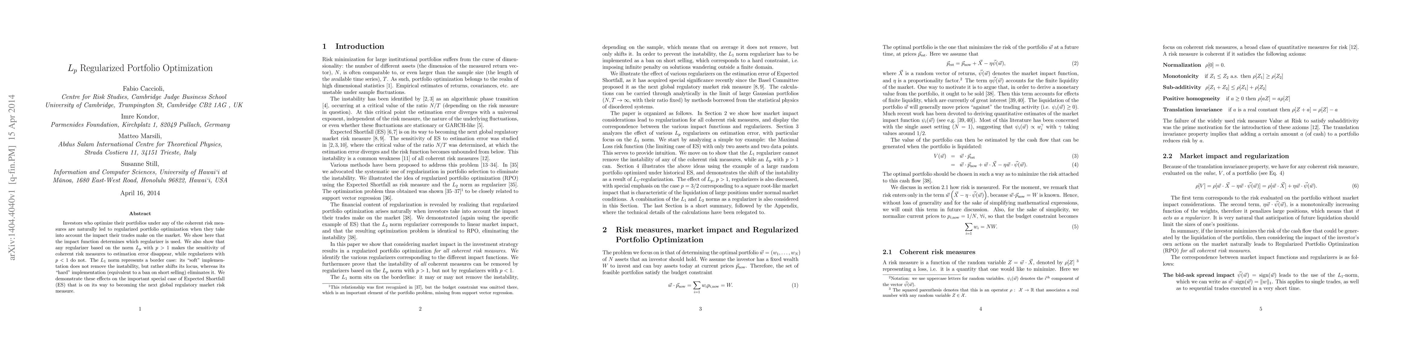 Investors who optimize their portfolios under any of the coherent risk measures are naturally led to regularized portfolio optimization when they take into account the impact their trades make on the market. We show here that the impact function determines which regularizer is used. We also show that any regularizer based on the norm $L_p$ with $p>1$ makes the sensitivity of coherent risk measures to estimation error disappear, while regularizers with $p<1$ do not. The $L_1$ norm represents a border case: its "soft" implementation does not remove the instability, but rather shifts its locus, whereas its "hard" implementation (equivalent to a ban on short selling) eliminates it. We demonstrate these effects on the important special case of Expected Shortfall (ES) that is on its way to becoming the next global regulatory market risk measure.