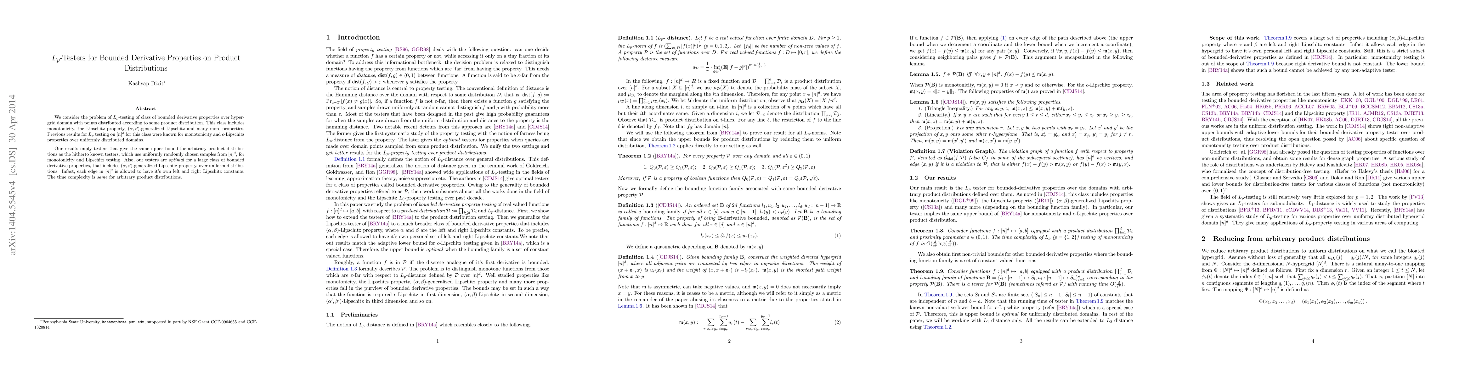 We consider the problem of $L_p$-testing of class of bounded derivative properties over hypergrid domain with points distributed according to some product distribution. This class includes monotonicity, the Lipschitz property, $(\alpha,\beta)$-generalized Lipschitz and many more properties. Previous results for $L_p$ testing on $[n]^d$ for this class were known for monotonicity and $c$-Lipschitz properties over uniformly distributed domains. \medskip Our results imply testers that give the same upper bound for arbitrary product distributions as the hitherto known testers, which use uniformly randomly chosen samples from $[n]^d$, for monotonicity and Lipschitz testing. Also, our testers are \emph{optimal} for a large class of bounded derivative properties, that includes $(\alpha, \beta)$-generalized Lipschitz property, over uniform distributions. Infact, each edge in $[n]^d$ is allowed to have it's own left and right Lipschitz constants. The time complexity is \emph{same} for arbitrary product distributions.
