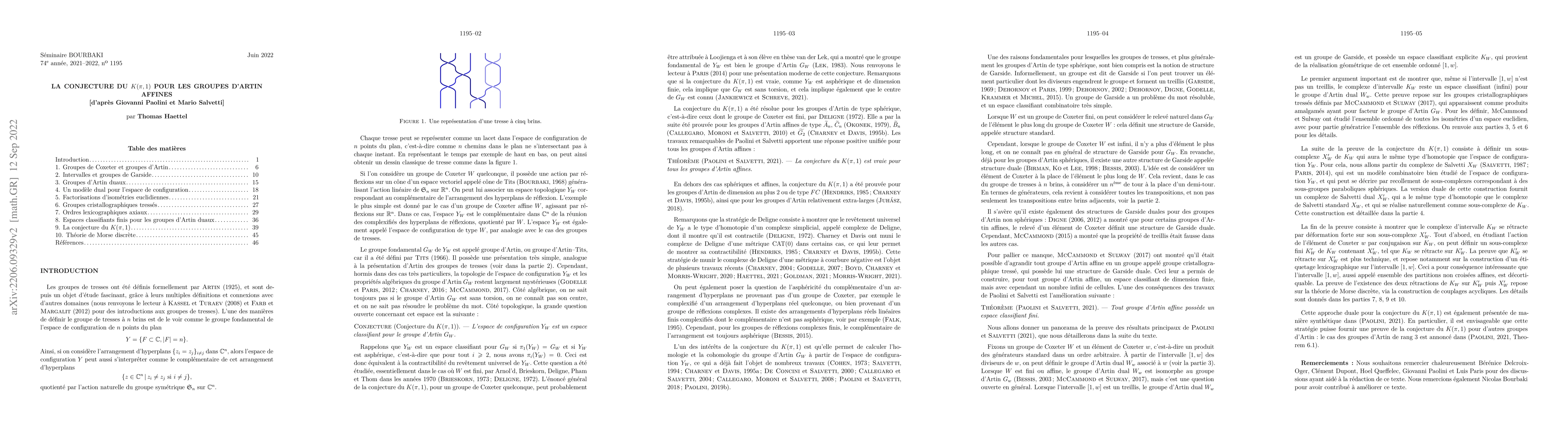 The $K(\pi,1)$ conjecture for affine Artin groups has been proven by Paolini and Salvetti, showing that the complement of the complexified arrangement of reflection hyperplanes in $\mathbb{C}^n$ serves as a classifying space for the associated affine Artin group. This proof leverages dual Garside structures, Euclidean isometry factorizations, and the shellability of noncrossing partitions.