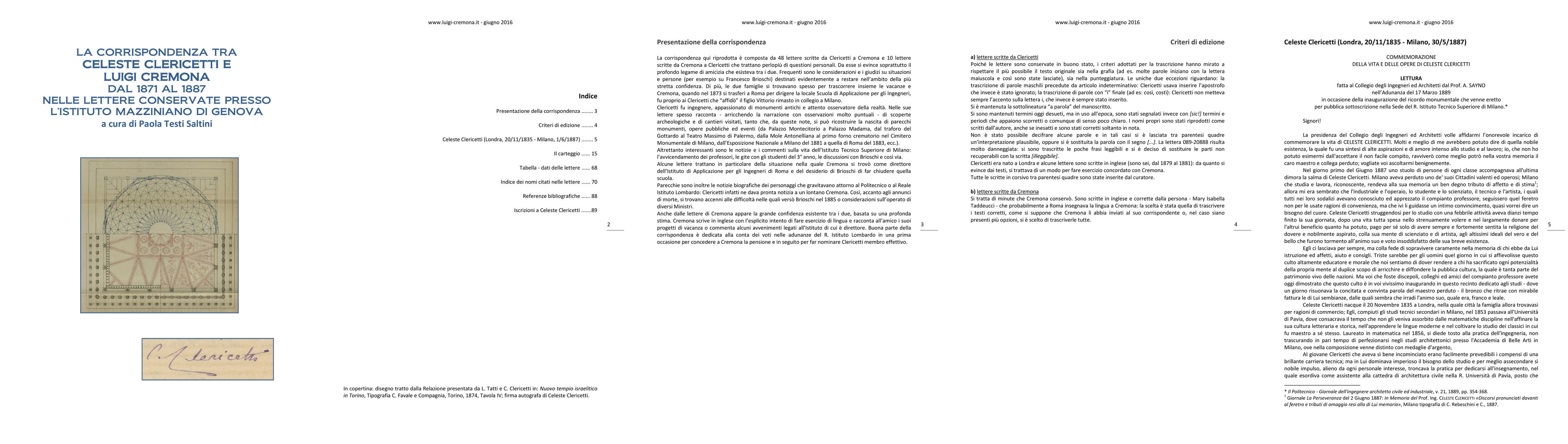 This paper transcribes 48 letters from Celeste Clericetti to Luigi Cremona and 10 letters from Cremona to Clericetti, spanning from 1871 to 1887, originally housed at the Istituto Mazziniano in Genoa and now available online. The transcription includes extensive notes and biographical details of all individuals mentioned.