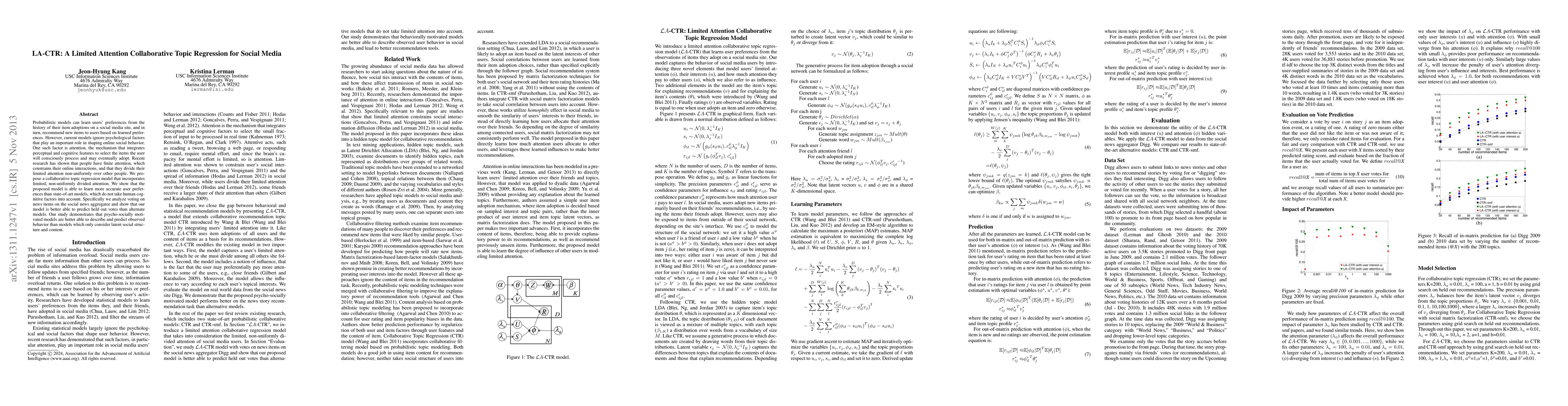 The paper proposes LA-CTR, a collaborative topic regression model incorporating limited, non-uniformly divided attention to better predict user preferences on social media. The model outperforms existing methods by considering psychological factors, as demonstrated through its superior performance in predicting news item votes on a social news aggregator.