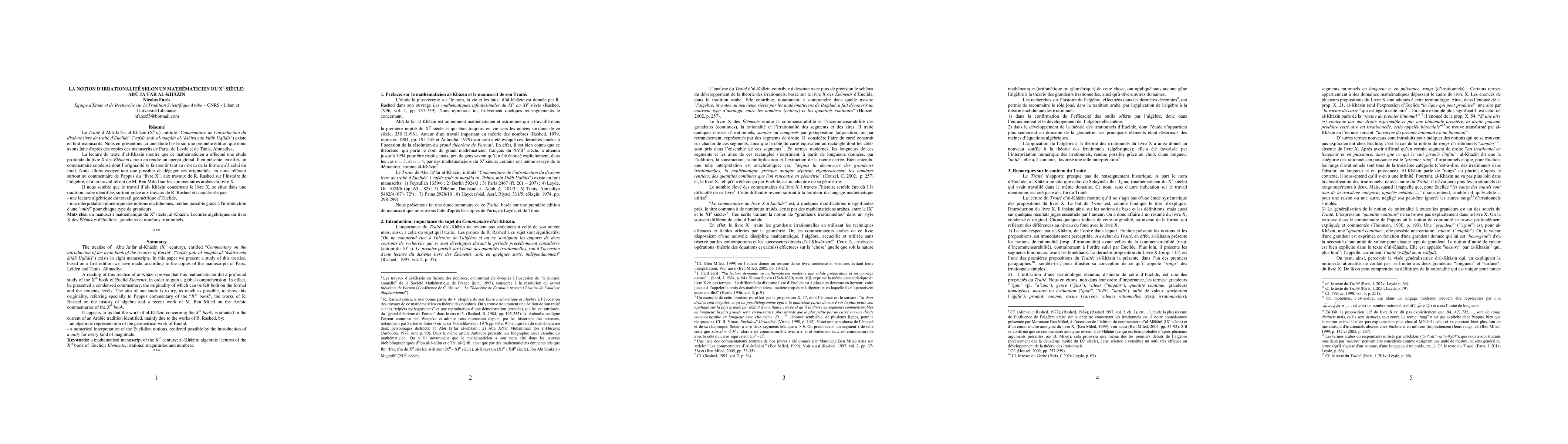 This study analyzes the 10th-century Arabic mathematician Abu Ja'far al-Khazin's commentary on Euclid's Elements, revealing a profound understanding of the Xth book through an algebraic representation of geometry and numerical interpretation of Euclidean notions.