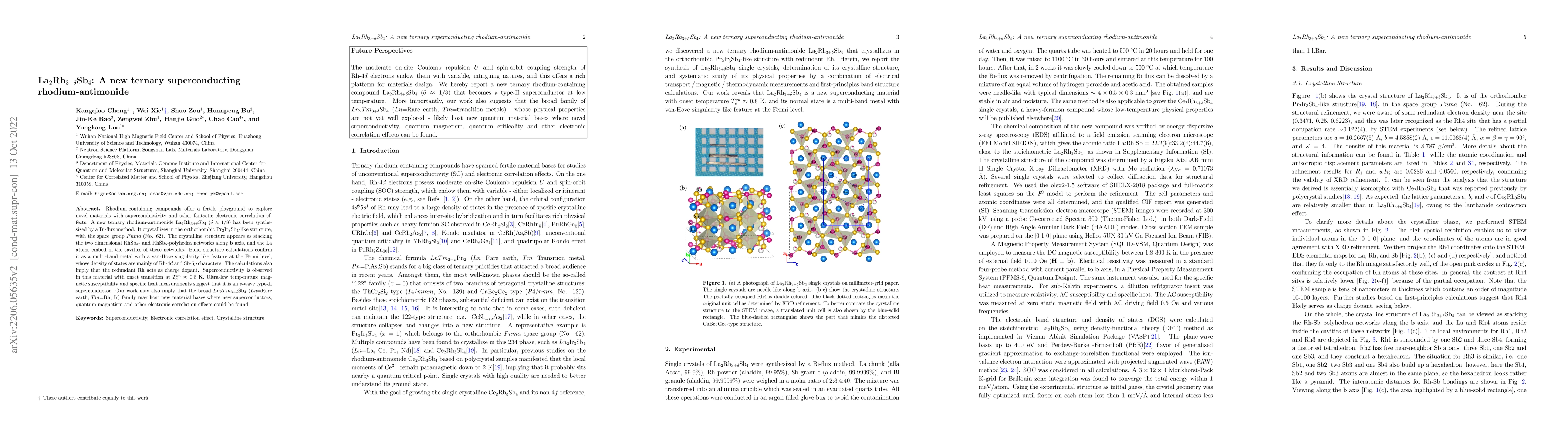 La$_2$Rh$_{3+\delta}$Sb$_4$ is a newly synthesized ternary rhodium-antimonide superconductor with an orthorhombic structure. It exhibits superconductivity at $T_c^{on}\approx$ 0.8 K and is predicted to be an s-wave type-II superconductor, suggesting potential for new materials with electronic correlation effects.