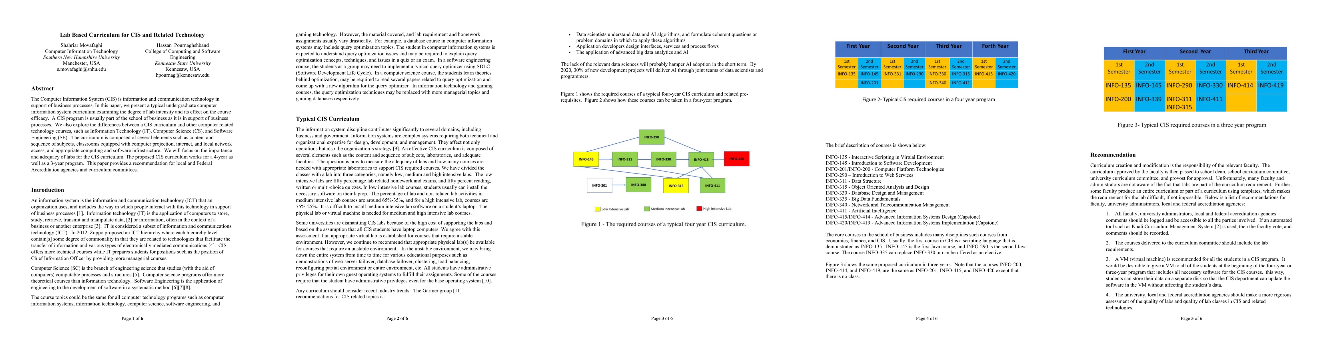 The Computer Information System (CIS) is information and communication technology in support of business processes. In this paper, we present a typical undergraduate computer information system curriculum examining the degree of lab intensity and its effect on the course efficacy. A CIS program is usually part of the school of business as it is in support of business processes. We also explore the differences between a CIS curriculum and other computer related technology courses, such as Information Technology (IT), Computer Science (CS), and Software Engineering (SE). The curriculum is composed of several elements such as content and sequence of subjects, classrooms equipped with computer projection, internet, and local network access, and appropriate computing and software infrastructure. We will focus on the importance and adequacy of labs for the CIS curriculum. The proposed CIS curriculum works for a 4-year as well as a 3-year program. This paper provides a recommendation for local and Federal Accreditation agencies and curriculum committees.