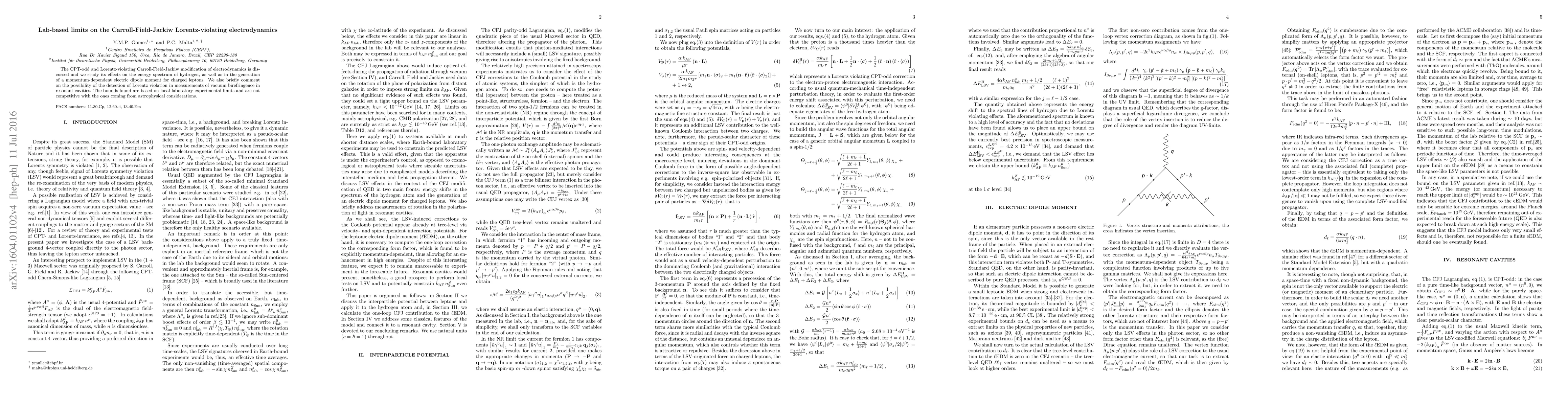 This paper investigates the effects of the Carroll-Field-Jackiw modification of electrodynamics, focusing on its impact on hydrogen's energy spectrum and the generation of a momentum-dependent electric dipole moment. The study concludes that lab-based limits on this Lorentz-violating electrodynamics are not competitive with astrophysical constraints.