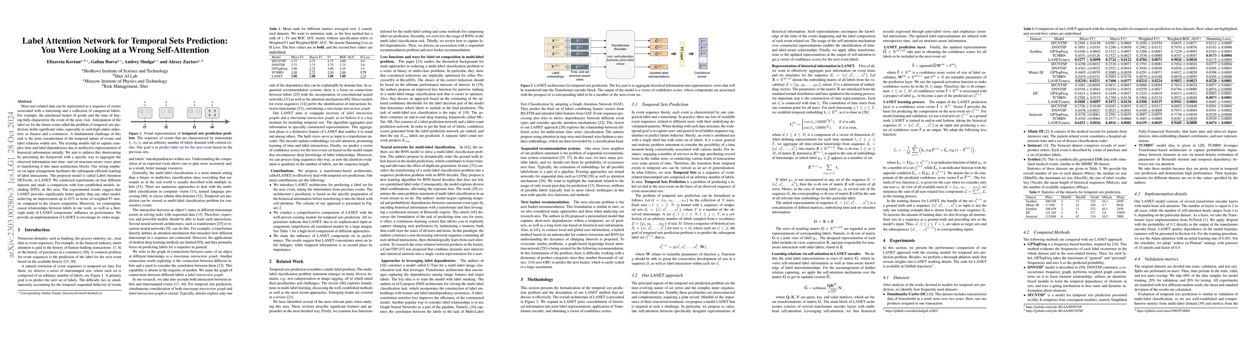 The paper proposes LANET, a Label Attention Network for sequential multi-label classification, which enhances self-attention over label interdependencies rather than just temporal interactions. LANET outperforms traditional transformer models, achieving a micro-AUC of $0.9536$ compared to $0.7501$.