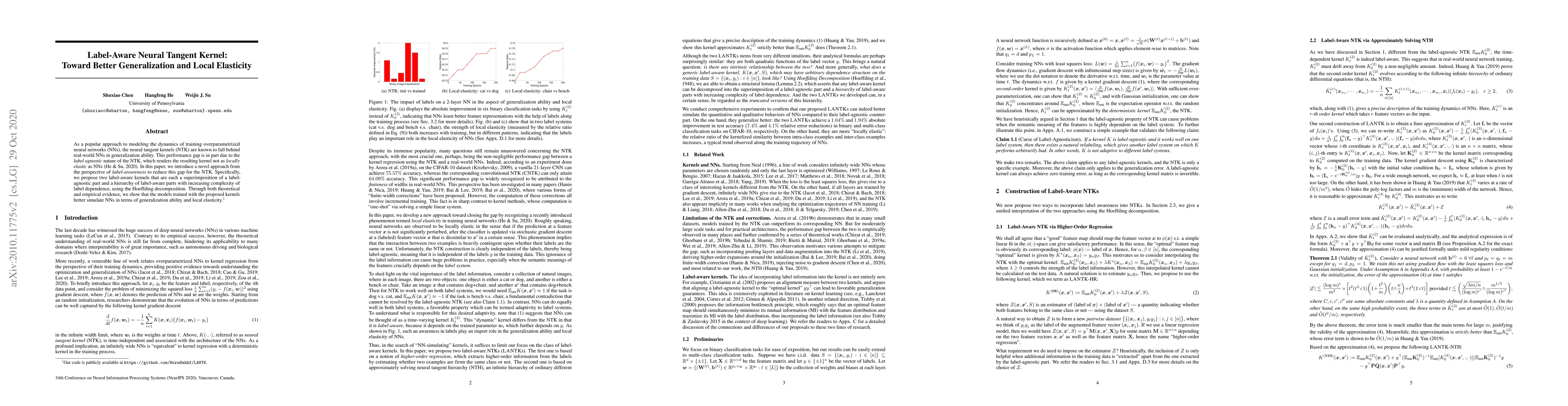 As a popular approach to modeling the dynamics of training overparametrized neural networks (NNs), the neural tangent kernels (NTK) are known to fall behind real-world NNs in generalization ability. This performance gap is in part due to the \textit{label agnostic} nature of the NTK, which renders the resulting kernel not as \textit{locally elastic} as NNs~\citep{he2019local}. In this paper, we introduce a novel approach from the perspective of \emph{label-awareness} to reduce this gap for the NTK. Specifically, we propose two label-aware kernels that are each a superimposition of a label-agnostic part and a hierarchy of label-aware parts with increasing complexity of label dependence, using the Hoeffding decomposition. Through both theoretical and empirical evidence, we show that the models trained with the proposed kernels better simulate NNs in terms of generalization ability and local elasticity.