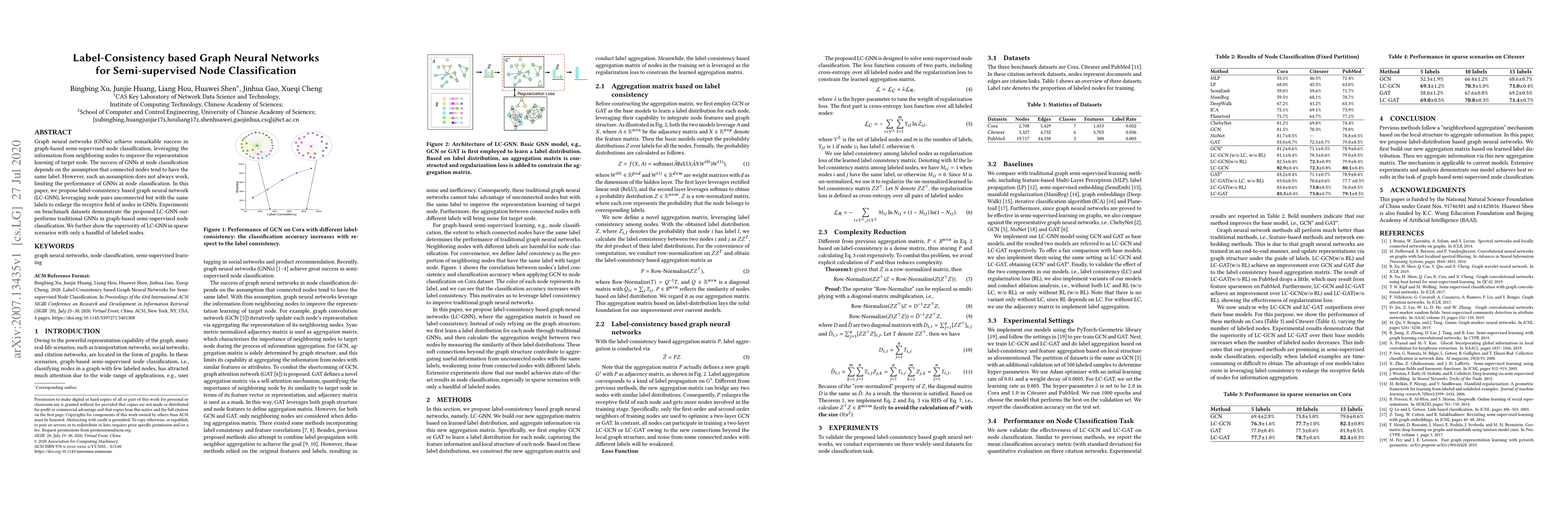 This paper introduces a label-consistency based graph neural network (LC-GNN) that leverages node pairs with the same labels but no direct connections to enhance node representation learning. Experiments show LC-GNN outperforms traditional GNNs in semi-supervised node classification, especially in sparse labeled data scenarios.