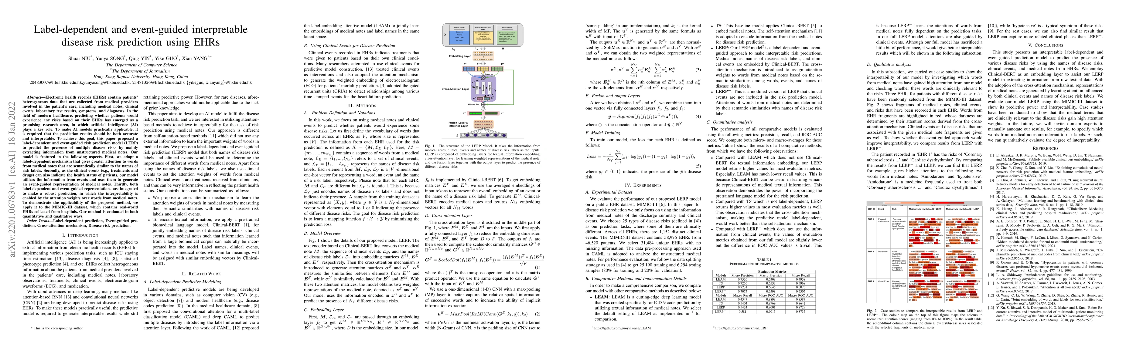 This paper introduces a label-dependent and event-guided risk prediction model (LERP) to accurately and interpretably predict disease risks using electronic health records (EHRs). The model focuses on extracting relevant information from unstructured medical notes and incorporates clinical events to enhance prediction robustness.