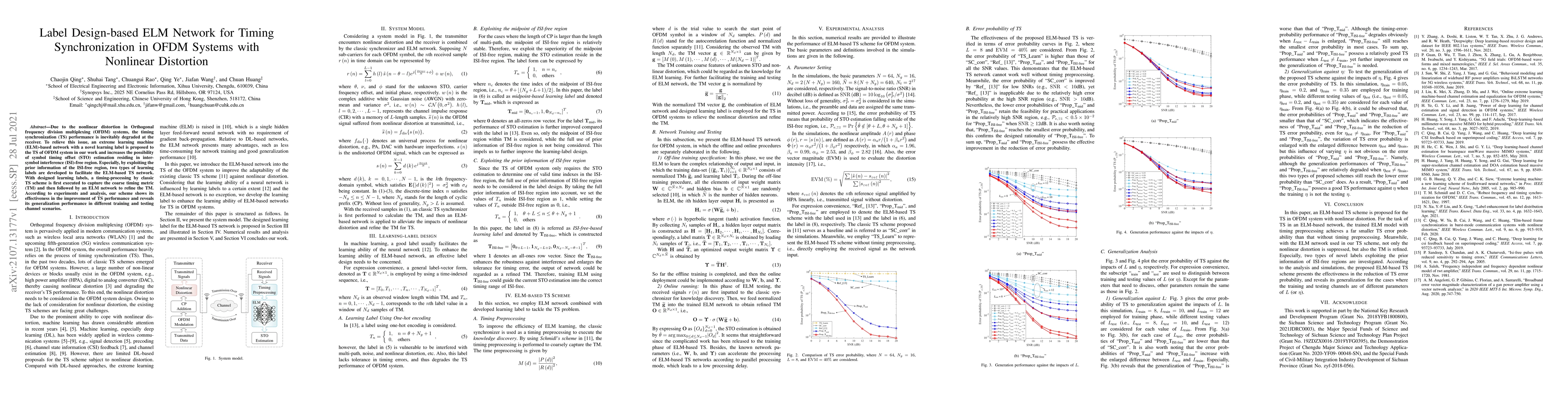 This paper proposes an ELM network with novel label design to enhance timing synchronization in OFDM systems affected by nonlinear distortion. The method uses two types of learning labels to improve symbol timing offset estimation, refining initial timing metrics through a classic TS scheme followed by ELM refinement, demonstrating improved performance and generalization across different channel scenarios.