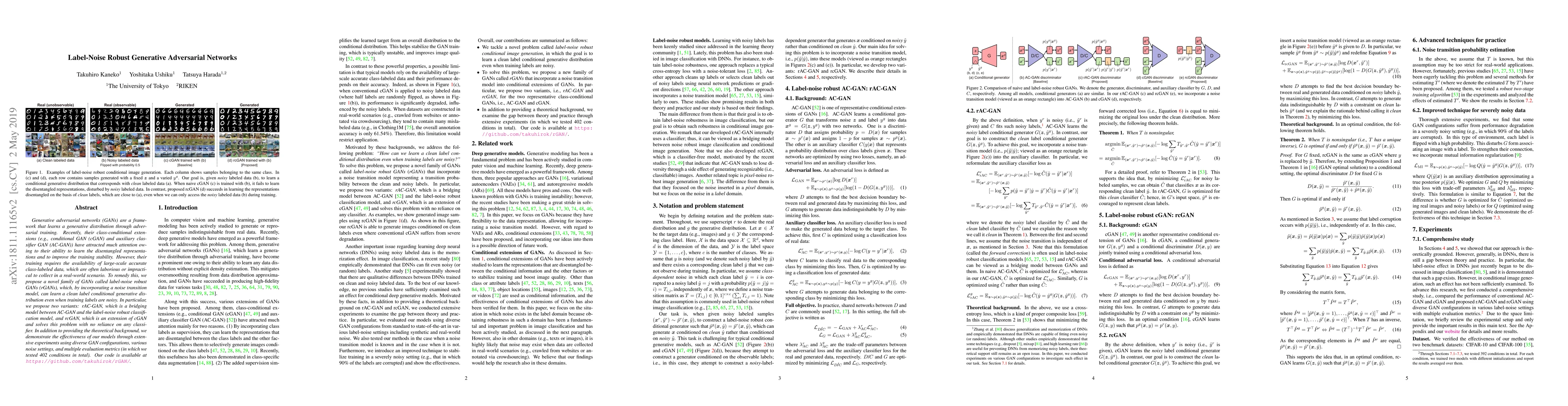This paper proposes label-noise robust GANs (rGANs) to address the challenge of training GANs with noisy labels. It introduces two variants, rAC-GAN and rcGAN, demonstrating their effectiveness through extensive experiments under various noise settings and evaluation metrics.