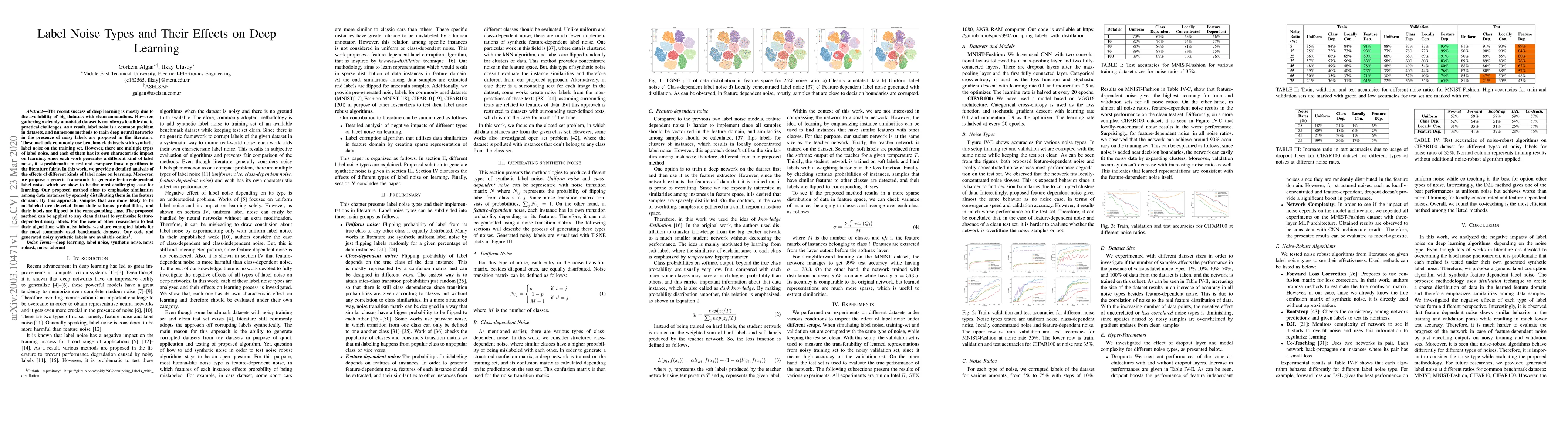 This paper analyzes the various types of label noise and their distinct impacts on deep learning, proposing a framework to generate feature-dependent noise, which is shown to be particularly challenging. It also shares corrupted labels for common datasets to facilitate algorithm testing.