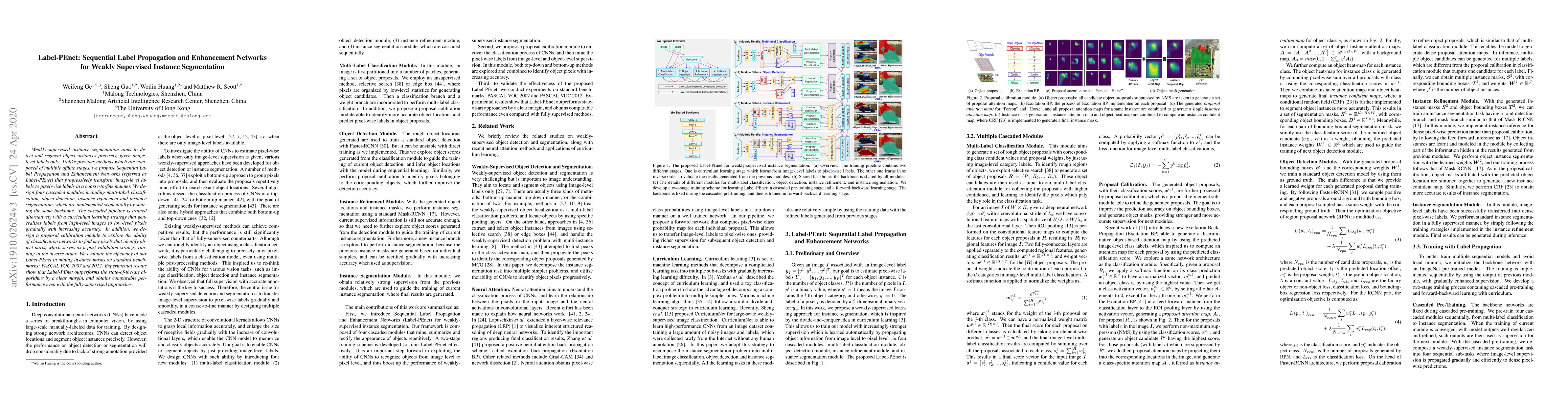 Label-PEnet proposes a sequential network for weakly-supervised instance segmentation, progressively transforming image-level labels into pixel-wise labels through a coarse-to-fine approach. The method outperforms state-of-the-art algorithms on standard benchmarks, demonstrating its effectiveness in detecting and segmenting object instances.