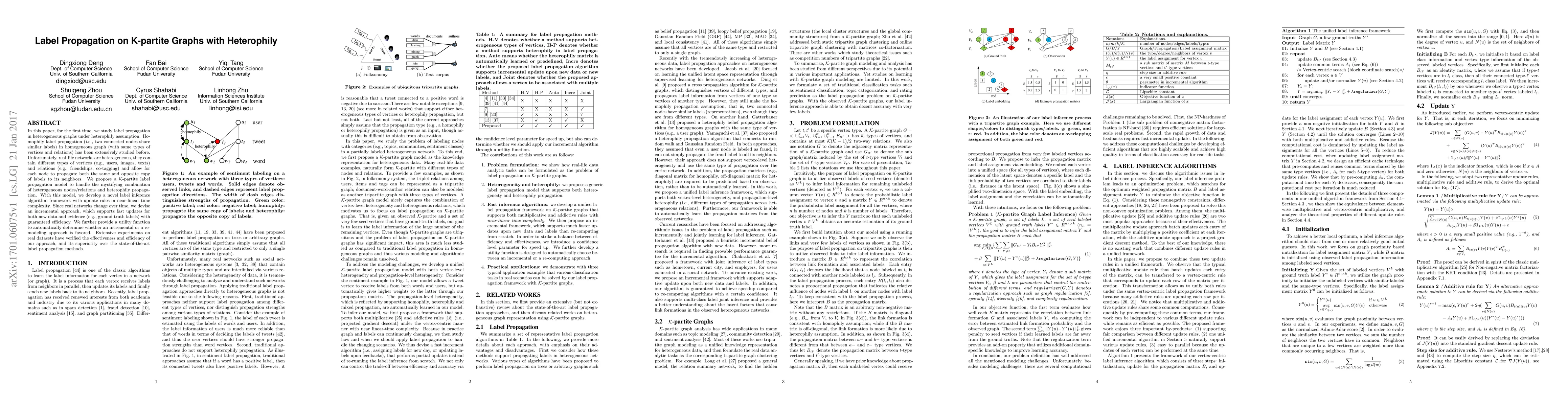 In this paper, for the first time, we study label propagation in heterogeneous graphs under heterophily assumption. Homophily label propagation (i.e., two connected nodes share similar labels) in homogeneous graph (with same types of vertices and relations) has been extensively studied before. Unfortunately, real-life networks are heterogeneous, they contain different types of vertices (e.g., users, images, texts) and relations (e.g., friendships, co-tagging) and allow for each node to propagate both the same and opposite copy of labels to its neighbors. We propose a $\mathcal{K}$-partite label propagation model to handle the mystifying combination of heterogeneous nodes/relations and heterophily propagation. With this model, we develop a novel label inference algorithm framework with update rules in near-linear time complexity. Since real networks change over time, we devise an incremental approach, which supports fast updates for both new data and evidence (e.g., ground truth labels) with guaranteed efficiency. We further provide a utility function to automatically determine whether an incremental or a re-modeling approach is favored. Extensive experiments on real datasets have verified the effectiveness and efficiency of our approach, and its superiority over the state-of-the-art label propagation methods.