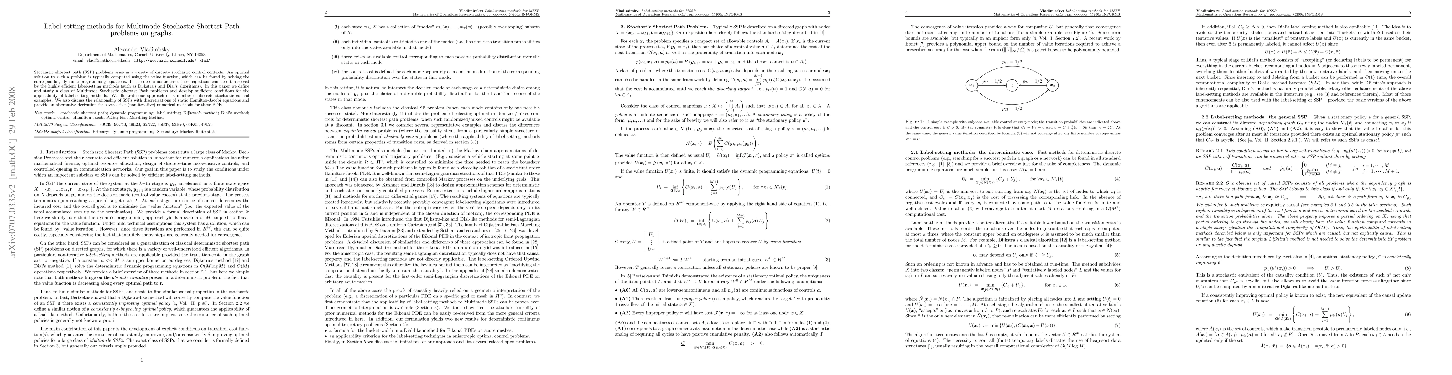 This paper defines Multimode Stochastic Shortest Path problems and explores the applicability of label-setting methods, like Dijkstra's and Dial's algorithms, to solve them. It also connects these problems to discretizations of static Hamilton-Jacobi equations and provides alternative derivations for fast numerical methods.