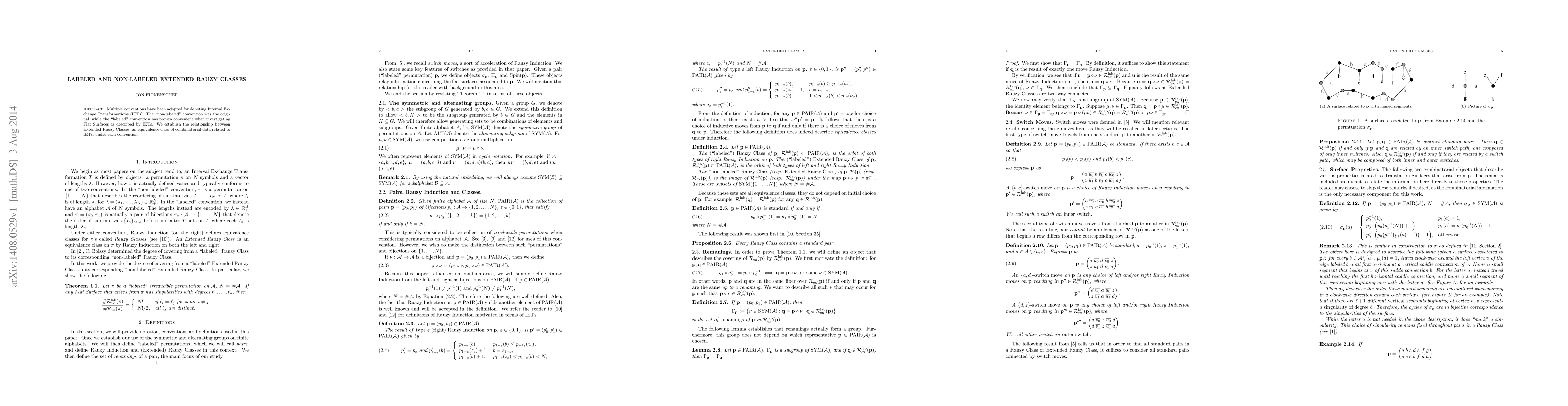 Multiple conventions have been adopted for denoting Interval Exchange Transformations (IETs). The "non-labeled" convention was the original, while the "labeled" convention has proven convenient when investigating Flat Surfaces as described by IETs. We establish the relationship between Extended Rauzy Classes, an equivalence class of combinatorial data related to IETs, under each convention.