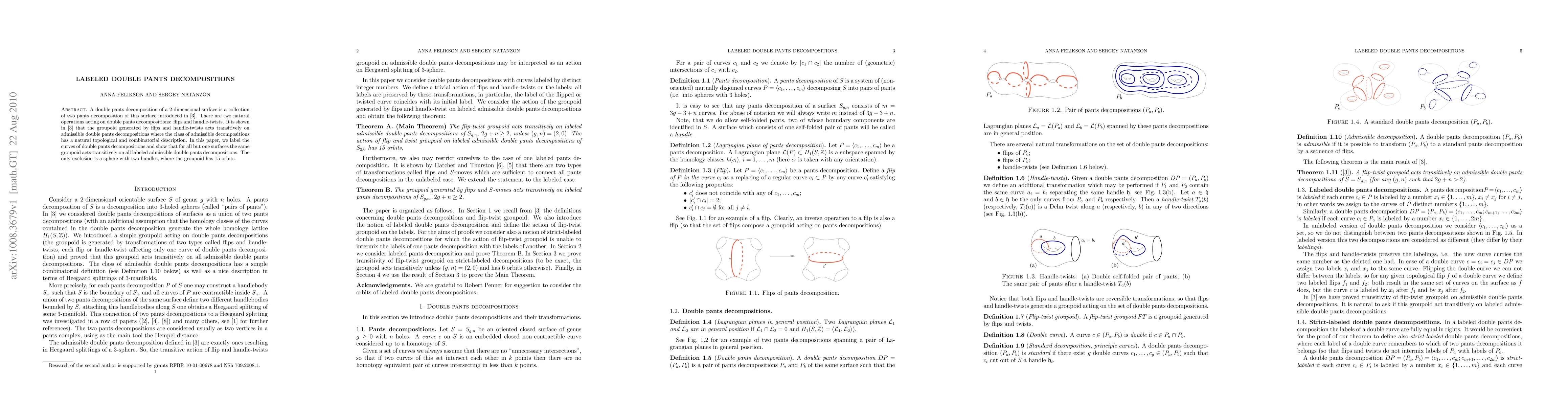 This paper explores labeled double pants decompositions of 2-dimensional surfaces, demonstrating that a specific groupoid acting via flips and handle twists remains transitive on most surfaces, except for a sphere with two handles which has 15 distinct orbits.