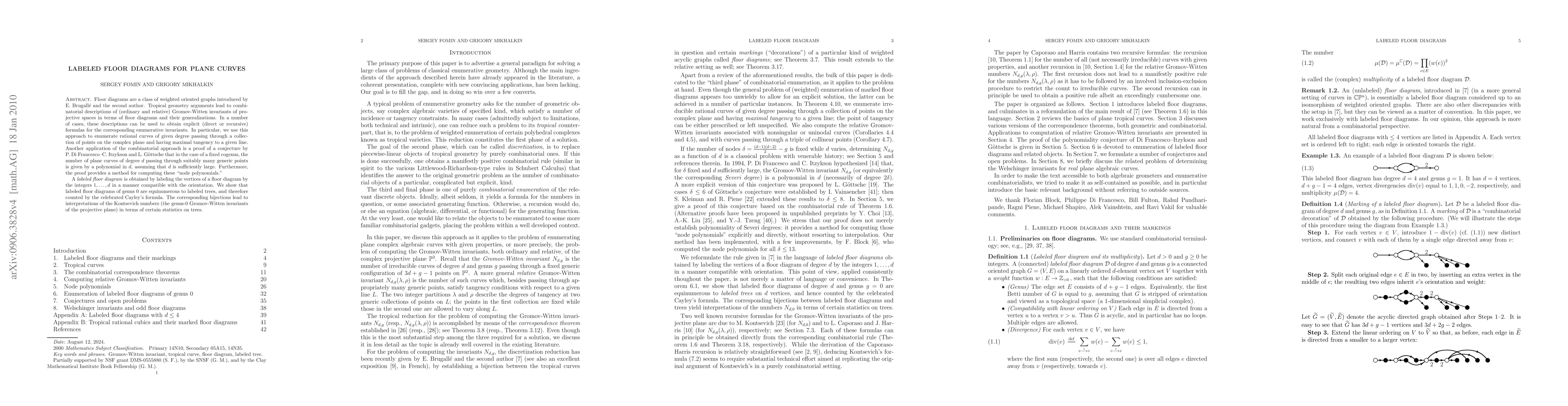 Researchers used labeled floor diagrams to count plane curves of given degree passing through certain points, leading to explicit formulas for enumerative invariants and a proof of a conjecture on curve counts.