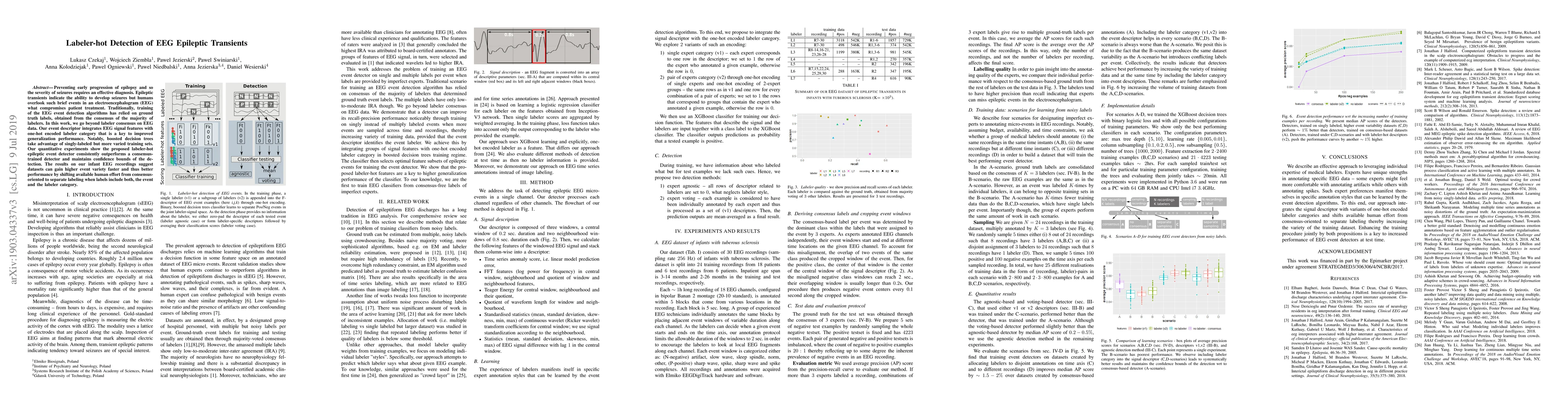 Preventing early progression of epilepsy and so the severity of seizures requires an effective diagnosis. Epileptic transients indicate the ability to develop seizures but humans overlook such brief events in an electroencephalogram (EEG) what compromises patient treatment. Traditionally, training of the EEG event detection algorithms has relied on ground truth labels, obtained from the consensus of the majority of labelers. In this work, we go beyond labeler consensus on EEG data. Our event descriptor integrates EEG signal features with one-hot encoded labeler category that is a key to improved generalization performance. Notably, boosted decision trees take advantage of singly-labeled but more varied training sets. Our quantitative experiments show the proposed labeler-hot epileptic event detector consistently outperforms a consensus-trained detector and maintains confidence bounds of the detection. The results on our infant EEG recordings suggest datasets can gain higher event variety faster and thus better performance by shifting available human effort from consensus-oriented to separate labeling when labels include both, the event and the labeler category.