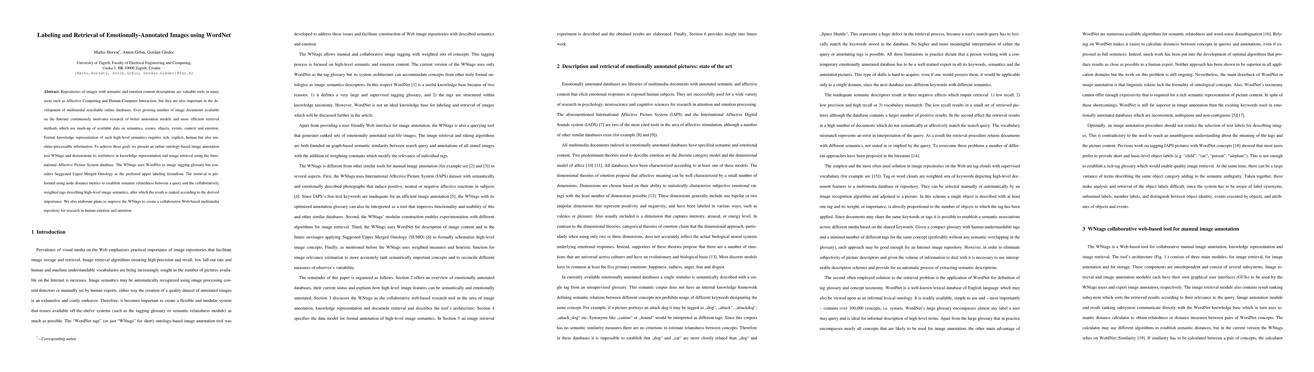 This paper introduces WNtags, an online ontology-based tool for annotating images with emotions using WordNet and SUO, and demonstrates its application in retrieving emotionally-annotated images from the International Affective Picture System. The tool employs node distance metrics for semantic relatedness in retrieval, aiming to enhance collaborative multimedia repositories for affective research.