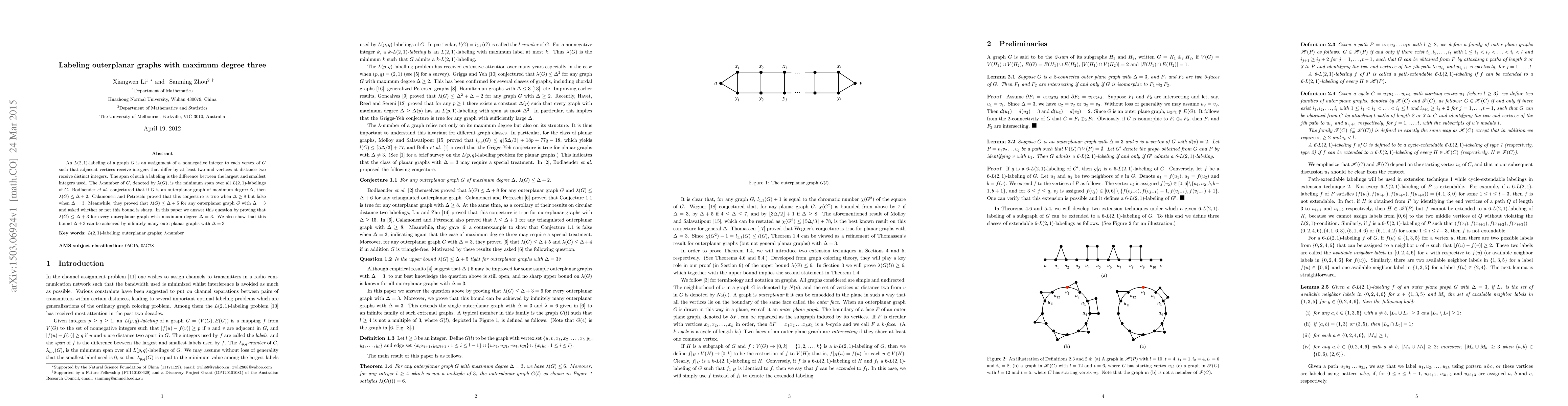 The paper presents novel lemmas and theorems for extending $L(2,1)$-labelings, particularly focusing on path and cycle extensions in the context of outerplanar graphs with maximum degree three.
