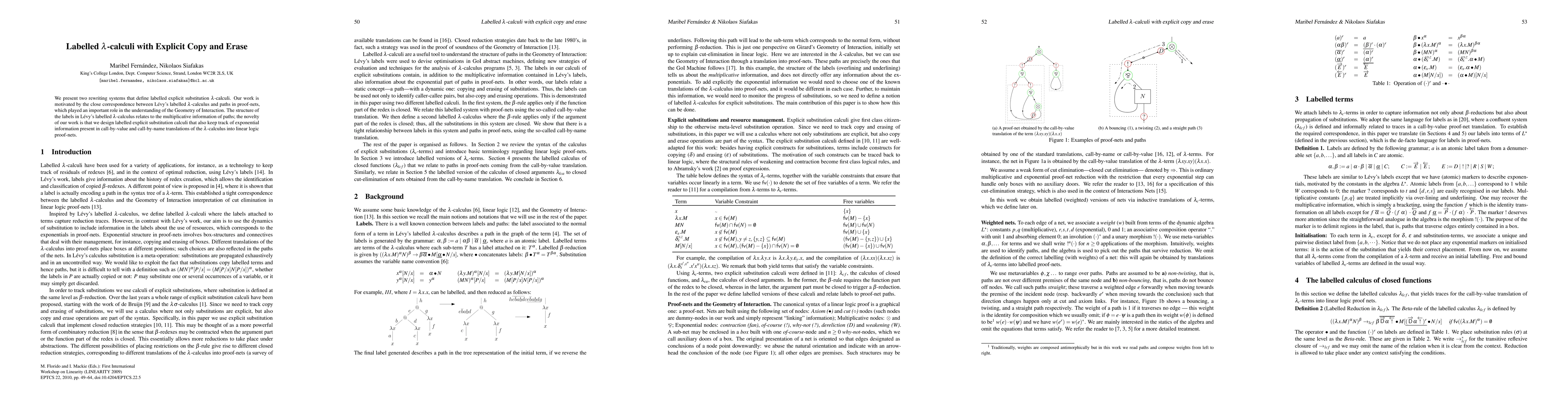 This paper introduces two rewriting systems for labelled lambda-calculi with explicit copy and erase operations, extending Levy's labelled lambda-calculus to account for exponential information alongside multiplicative information, which is significant for understanding the Geometry of Interaction.