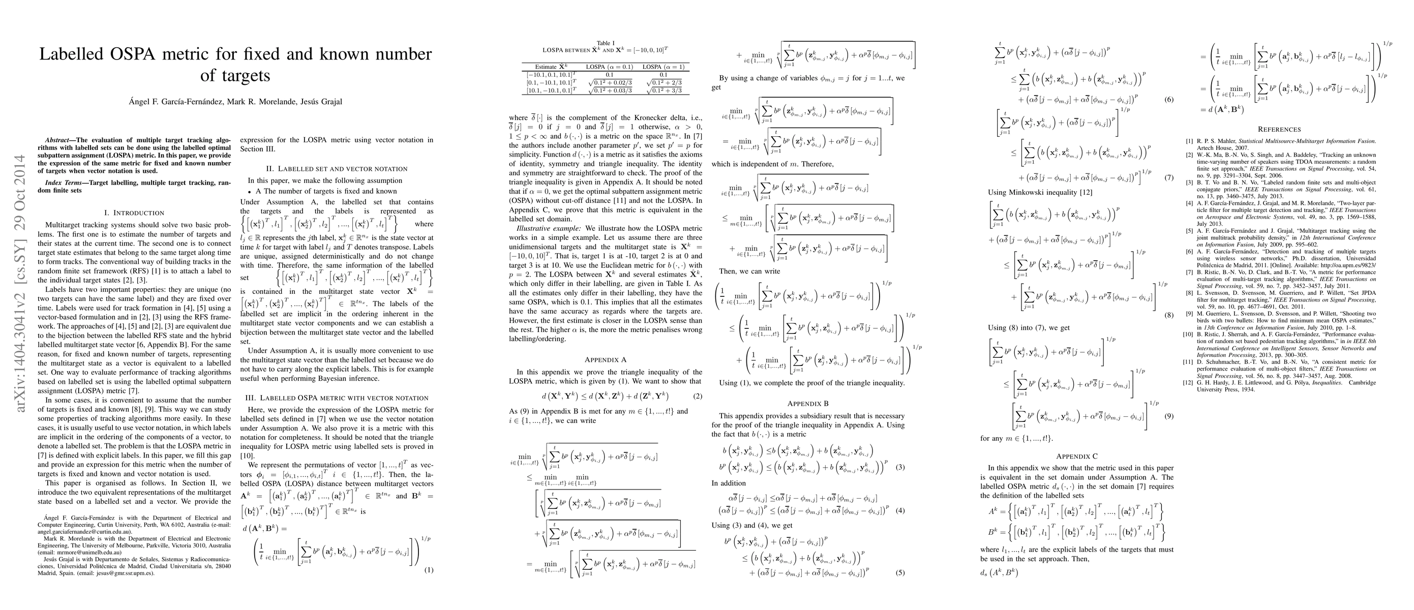 Researchers developed a new metric called Labelled OSPA for evaluating multiple target tracking algorithms with fixed and known numbers of targets. This improvement allows for more efficient evaluation of these complex algorithms.