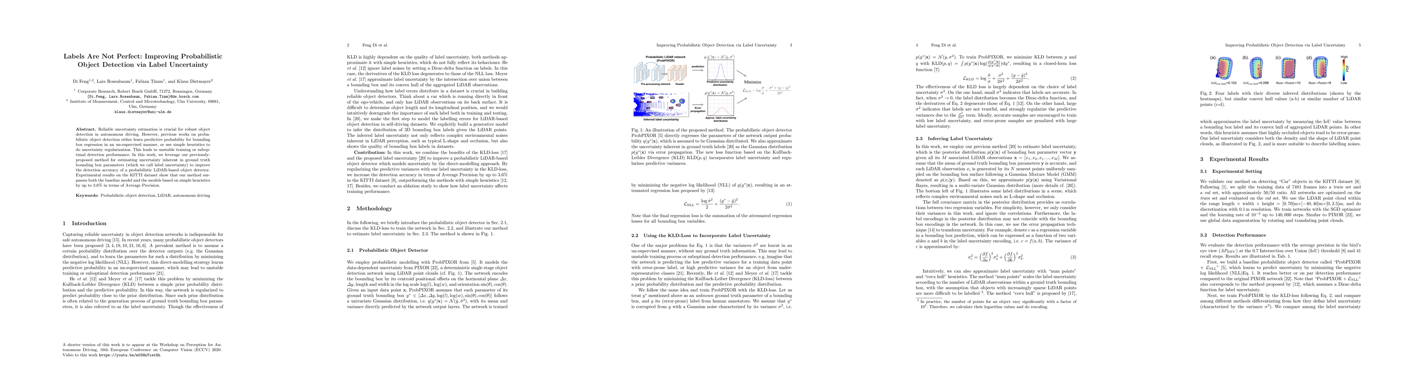 This paper proposes a method to improve probabilistic object detection by incorporating label uncertainty, which estimates the inherent uncertainty in ground truth bounding box parameters. Experimental results on the KITTI dataset demonstrate a 3.6% improvement in Average Precision compared to baseline models and those using simple heuristics.
