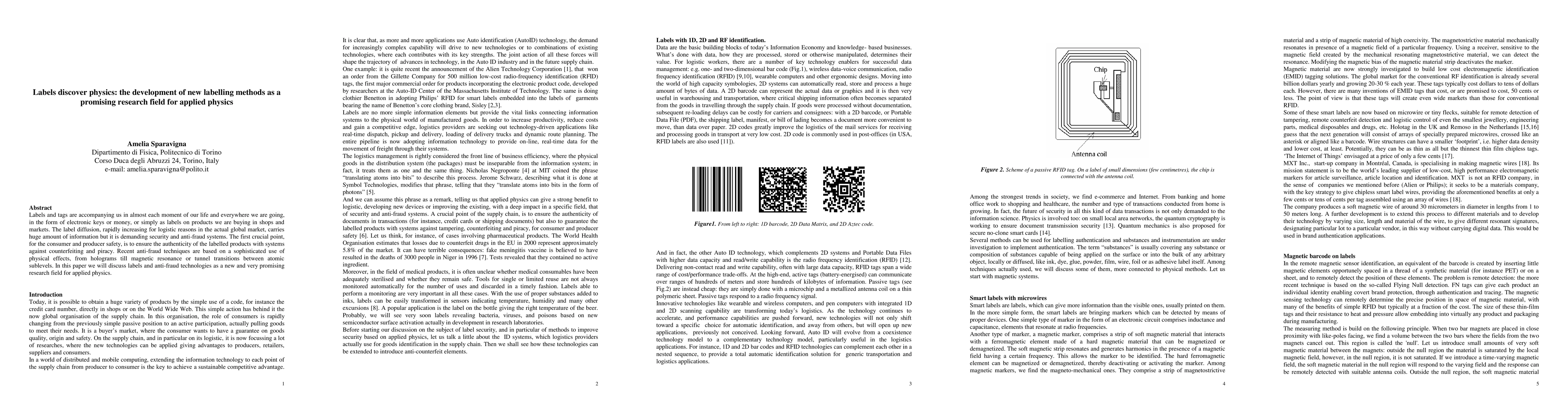 Labels and tags are accompanying us in almost each moment of our life and everywhere we are going, in the form of electronic keys or money, or simply as labels on products we are buying in shops and markets. The label diffusion, rapidly increasing for logistic reasons in the actual global market, carries huge amount of information but it is demanding security and anti-fraud systems. The first crucial point, for the consumer and producer safety, is to ensure the authenticity of the labelled products with systems against counterfeiting and piracy. Recent anti-fraud techniques are based on a sophisticated use of physical effects, from holograms till magnetic resonance or tunnel transitions between atomic sublevels. In this paper we will discuss labels and anti-fraud technologies as a new and very promising research field for applied physics.