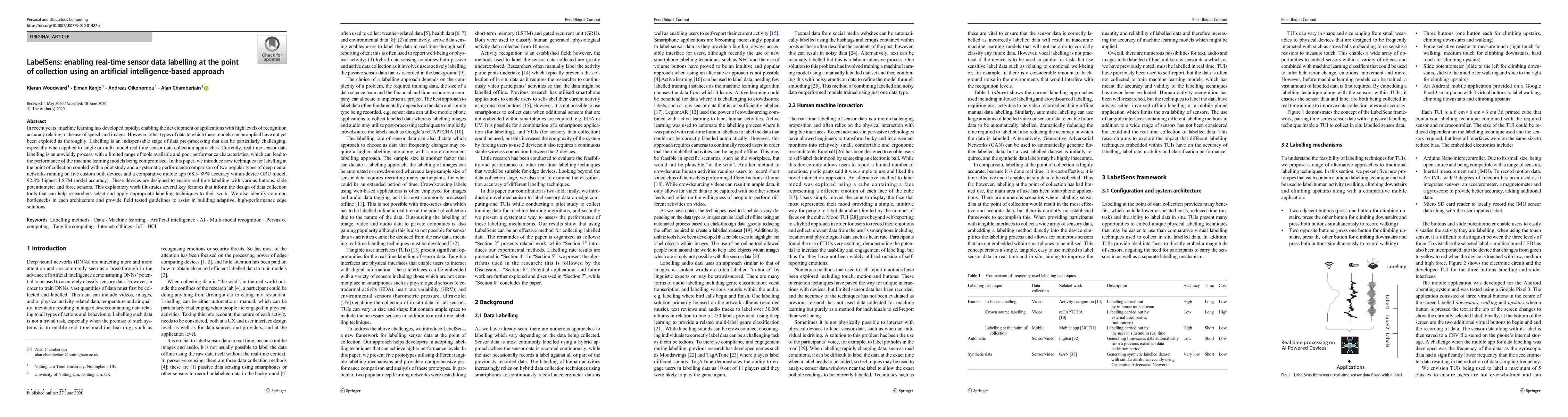 In recent years, machine learning has developed rapidly, enabling the development of applications with high levels of recognition accuracy relating to the use of speech and images. However, other types of data to which these models can be applied have not yet been explored as thoroughly. Labelling is an indispensable stage of data pre-processing that can be particularly challenging, especially when applied to single or multi-model real-time sensor data collection approaches. Currently, real-time sensor data labelling is an unwieldy process, with a limited range of tools available and poor performance characteristics, which can lead to the performance of the machine learning models being compromised. In this paper, we introduce new techniques for labelling at the point of collection coupled with a pilot study and a systematic performance comparison of two popular types of deep neural networks running on five custom built devices and a comparative mobile app (68.5-89% accuracy within-device GRU model, 92.8% highest LSTM model accuracy). These devices are designed to enable real-time labelling with various buttons, slide potentiometer and force sensors. This exploratory work illustrates several key features that inform the design of data collection tools that can help researchers select and apply appropriate labelling techniques to their work. We also identify common bottlenecks in each architecture and provide field tested guidelines to assist in building adaptive, high-performance edge solutions.