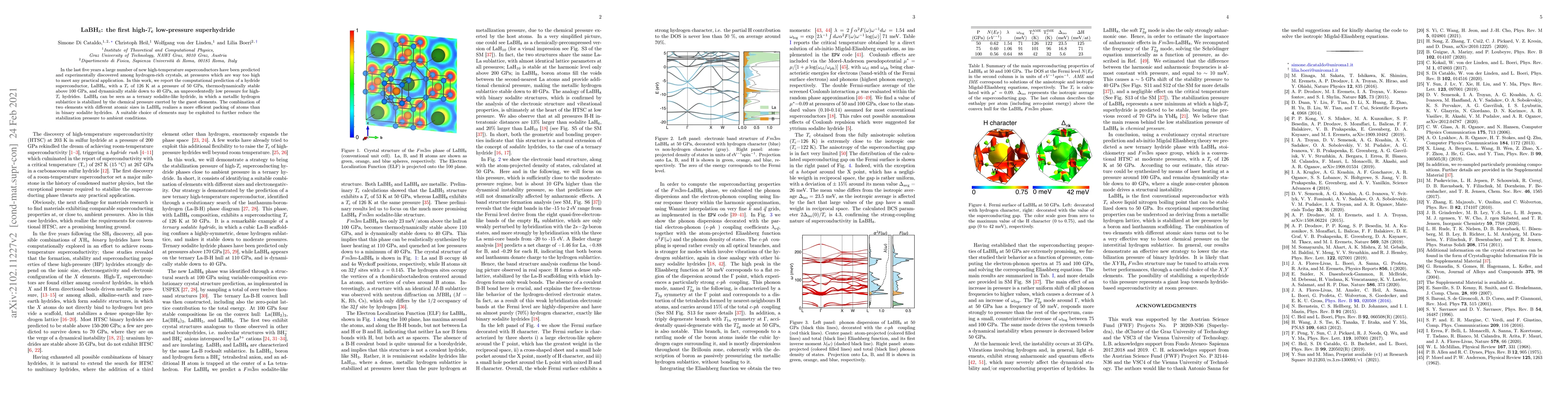 In the last five years a large number of new high-temperature superconductors have been predicted and experimentally discovered among hydrogen-rich crystals, at pressures which are way too high to meet any practical application. In this work, we report the computational prediction of a hydride superconductor, LaBH$_{8}$, with a T$_{c}$ of 126 K at a pressure of 50 GPa, thermodynamically stable above 100 GPa, and dynamically stable down to 40 GPa, an unprecedentedly low pressure for high-T$_{c}$ hydrides. LaBH$_{8}$ can be seen as a ternary sodalite-like hydride, in which a metallic hydrogen sublattice is stabilized by the chemical pressure exerted by the guest elements. The combination of two elements with different atomic sizes in LaBH$_{8}$ realizes a more efficient packing of atoms than in binary sodalite hydrides. A suitable choice of elements may be exploited to further reduce the stabilization pressure to ambient conditions.