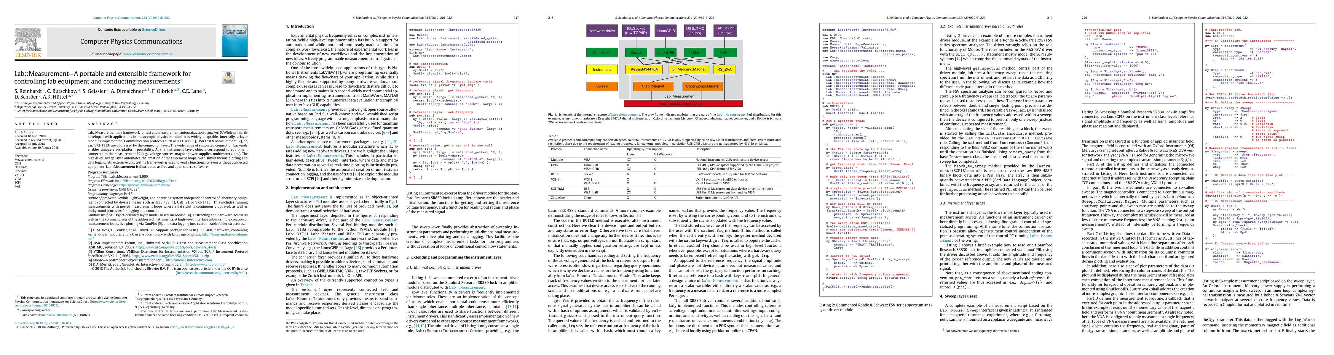 Lab::Measurement is a versatile Perl 5 framework for automating lab equipment control and measurements, supporting various communication protocols and adaptable to different scientific applications. It features a layered architecture, extensive unit testing, and is freely available open-source software.