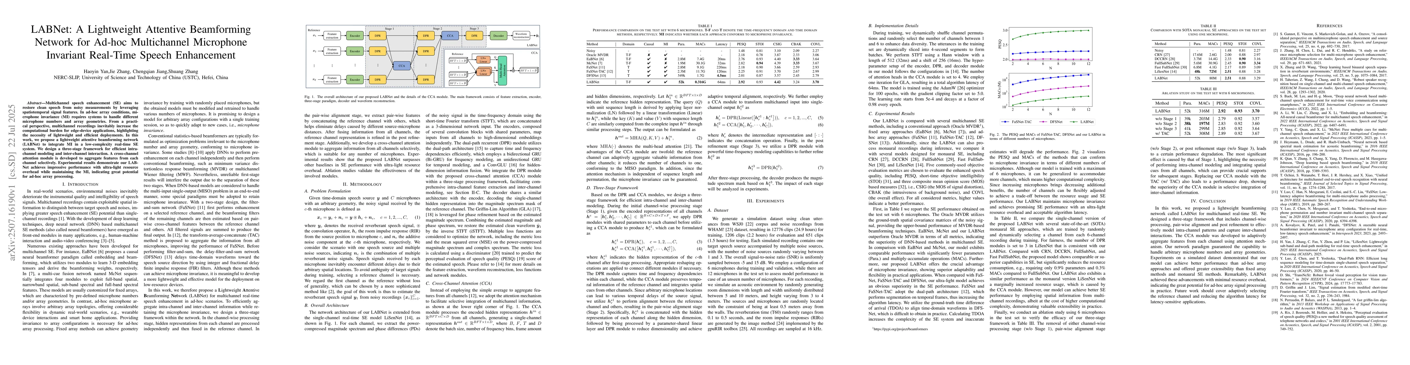 The paper proposes LABNet, a lightweight attentive beamforming network for ad-hoc multichannel microphone invariant real-time speech enhancement. It features a three-stage framework for efficient intra-channel modeling and inter-channel interaction, incorporating a cross-channel attention module to selectively aggregate features from each channel.