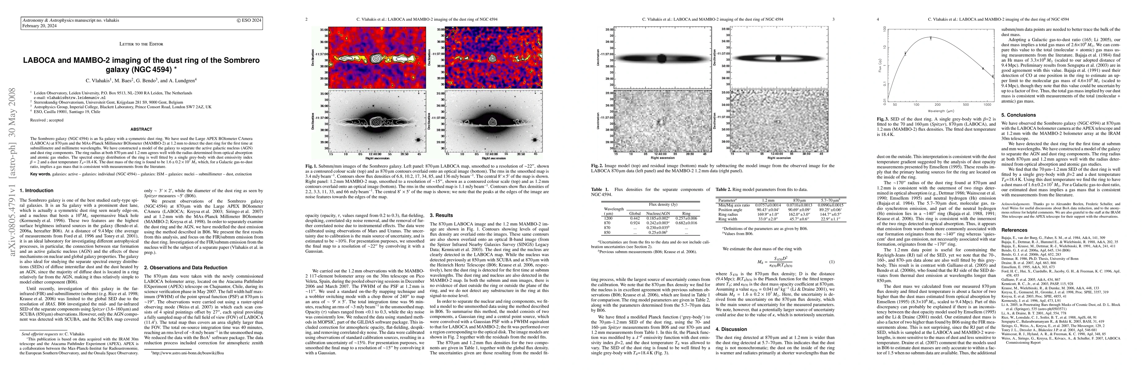 This study uses LABOCA and MAMBO-2 to detect the dust ring of the Sombrero galaxy for the first time at submillimetre and millimetre wavelengths, confirming its radius and modeling the galaxy's components. The dust ring's spectral energy distribution fits a grey-body model with a dust mass of 1.6±0.2x10^7Msun.