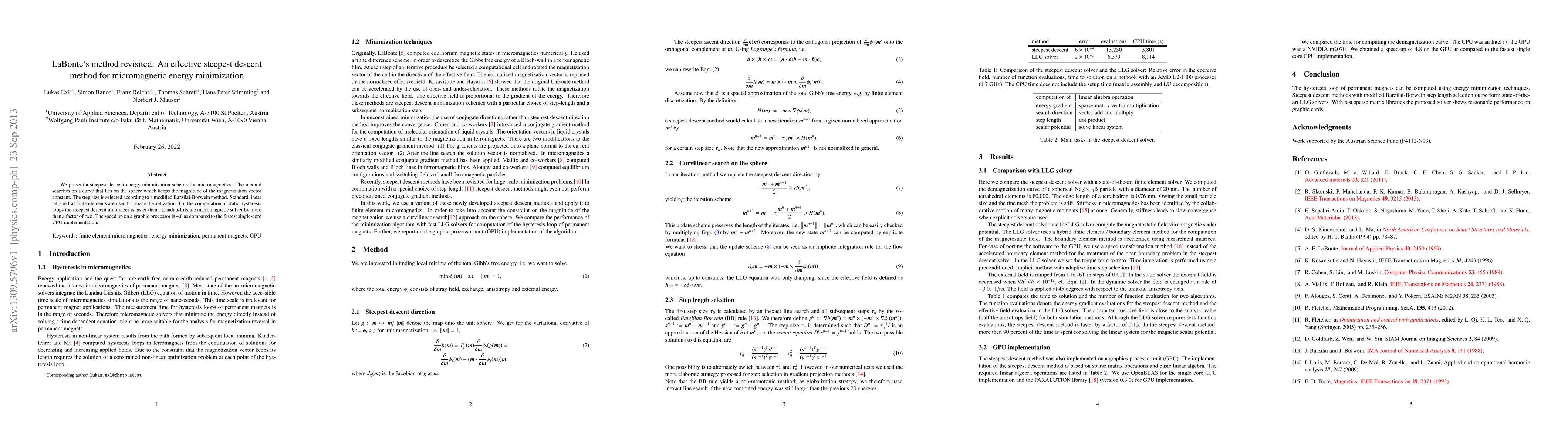 This paper revisits LaBonte's steepest descent method for micromagnetic energy minimization, employing a modified Barzilai-Borwein step size and linear tetrahedral finite elements. The method proves significantly faster than traditional solvers, achieving a speedup of 4.8 on GPUs compared to the fastest CPU implementation.