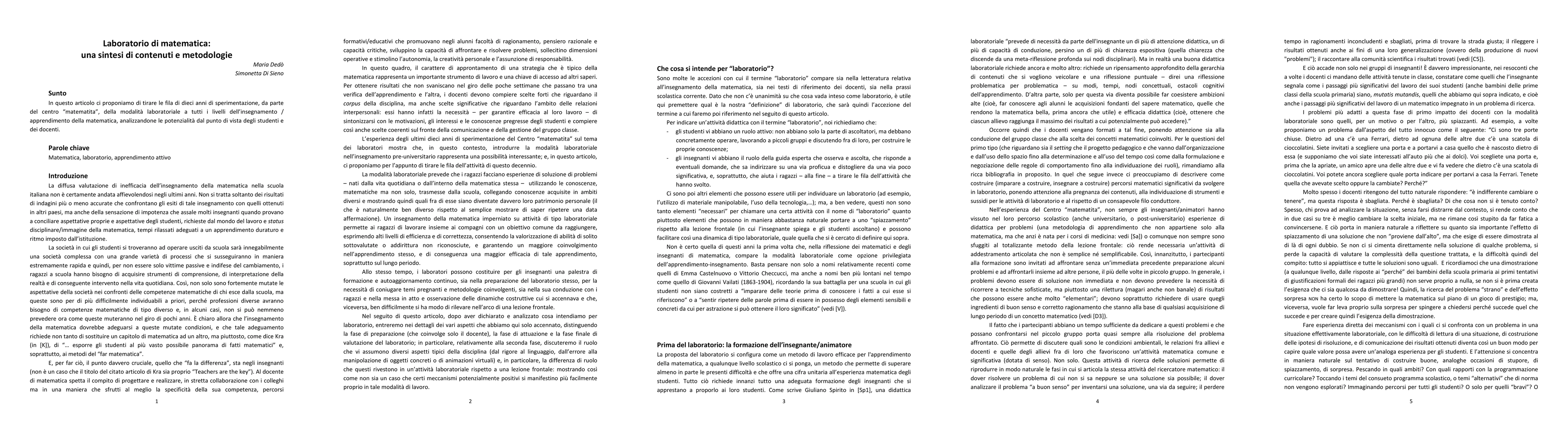 In this paper, our aim is to discuss the outcome of a ten-year experimental workshop activity carried out by the Center `matematita' (http://www.matematita.it/) with classes of pre-university students of any age. We analyse the potential benefits of this way of teaching and learning mathematics, both from the point of view of students and teachers.