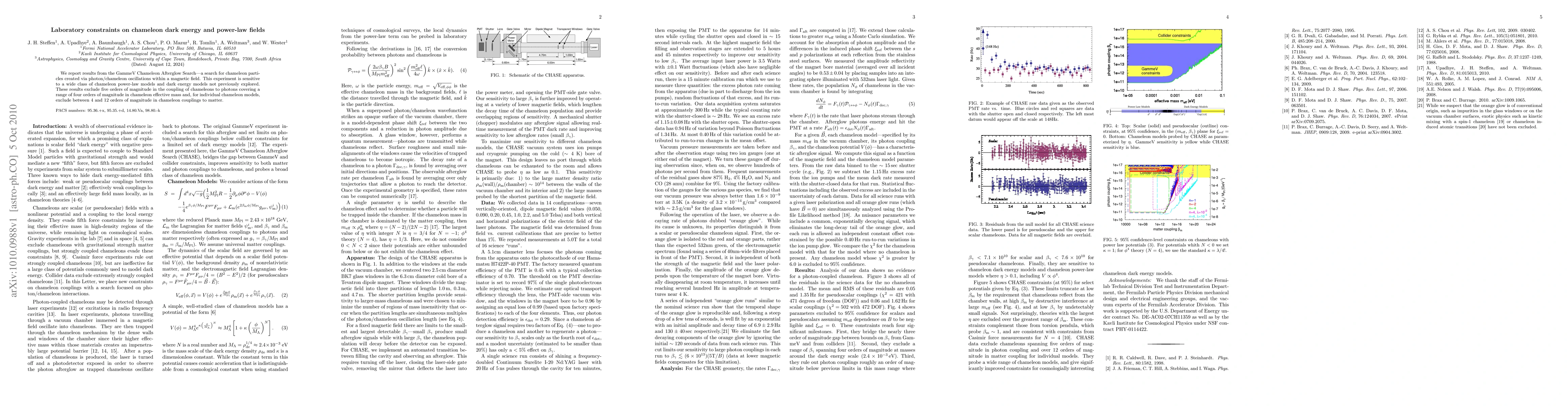 We report results from the GammeV Chameleon Afterglow Search---a search for chameleon particles created via photon/chameleon oscillations within a magnetic field. This experiment is sensitive to a wide class of chameleon power-law models and dark energy models not previously explored. These results exclude five orders of magnitude in the coupling of chameleons to photons covering a range of four orders of magnitude in chameleon effective mass and, for individual chameleon models, exclude between 4 and 12 orders of magnitude in chameleon couplings to matter.