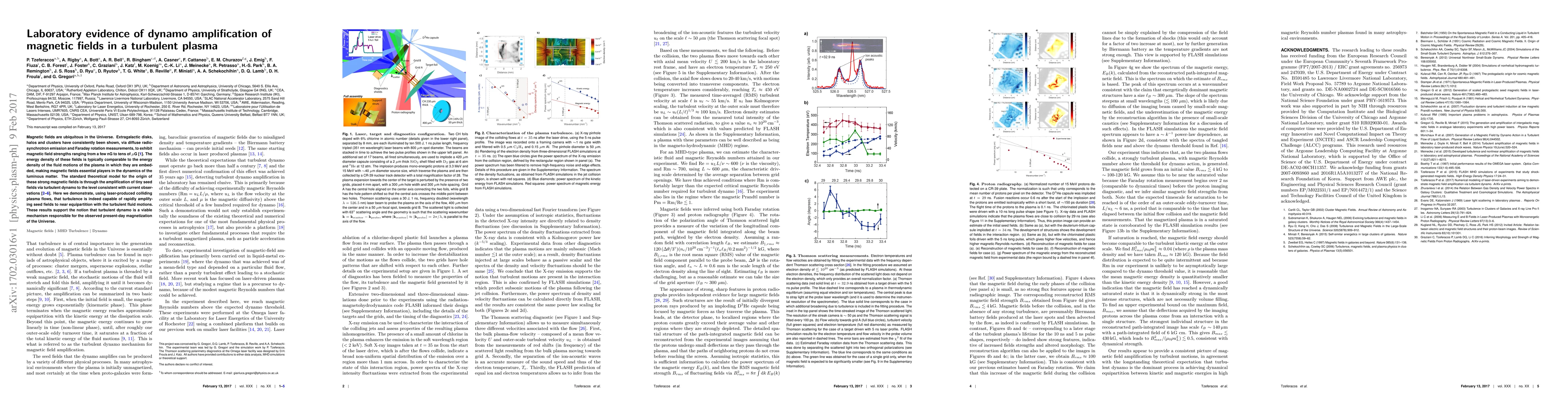 This research demonstrates, through laboratory experiments with laser-produced turbulent plasma flows, that turbulence can rapidly amplify small seed magnetic fields to near equipartition with fluid motions, supporting the turbulent dynamo theory as a viable mechanism for the observed magnetic fields in the Universe.