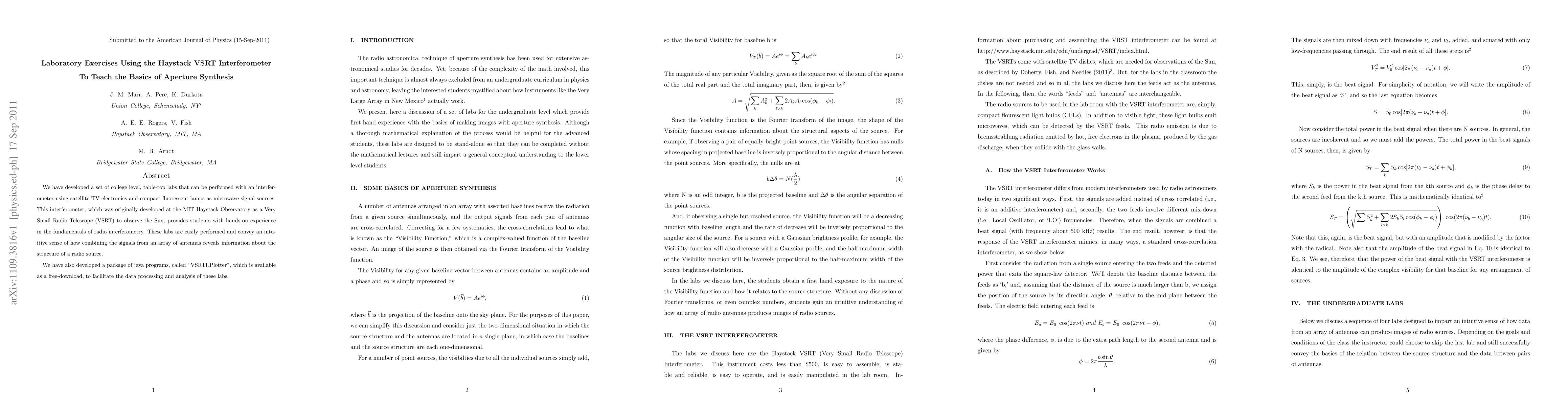Researchers created a set of hands-on labs using an affordable, tabletop interferometer to teach college students about radio interferometry, allowing for intuitive understanding of combining signals from multiple antennas.
