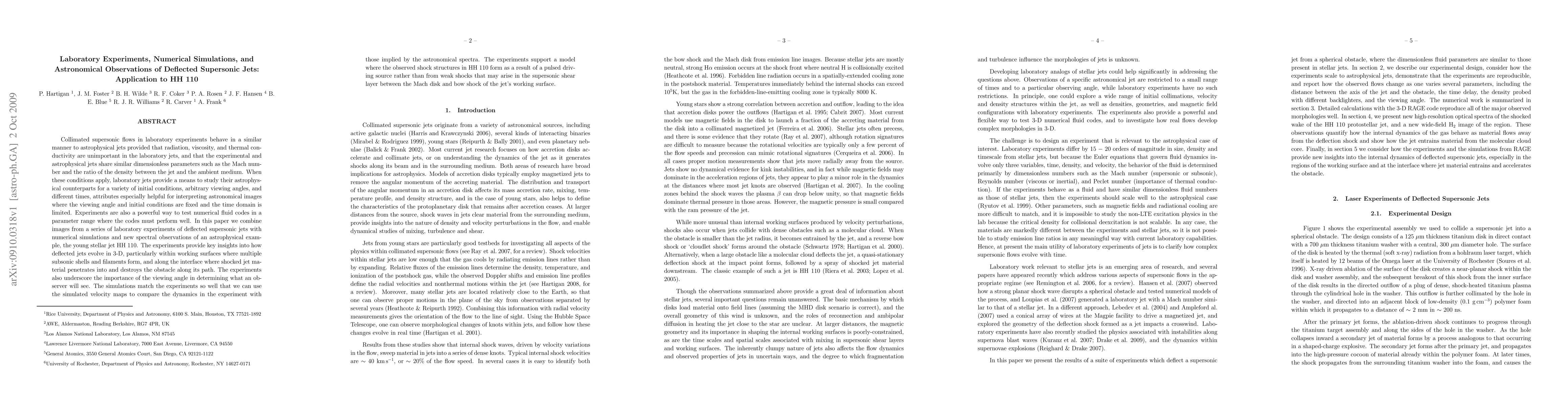 This paper combines laboratory experiments, numerical simulations, and astronomical observations to study the evolution of deflected supersonic jets, particularly focusing on HH 110. Laboratory experiments reveal the formation of subsonic shells and filaments in working surfaces and the penetration of shocked jet material, providing insights into jet dynamics.