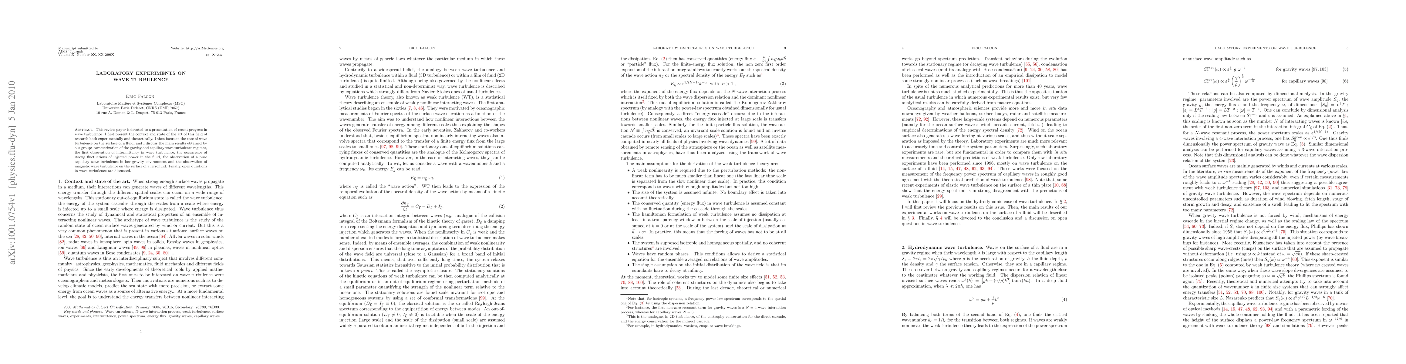 Researchers conducted laboratory experiments to study wave turbulence, observing key phenomena such as capillary wave turbulence, strong fluctuations in injected power, and magnetic wave turbulence in ferrofluids.