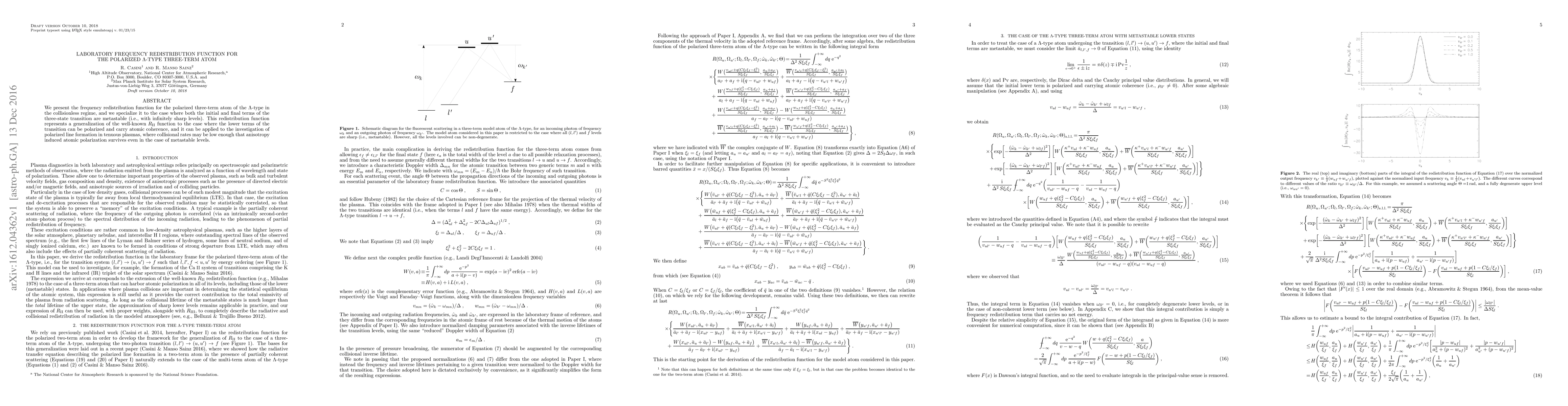 Researchers developed a new frequency redistribution function for polarized three-term atoms in tenuous plasmas, enabling the study of polarized line formation with low collision rates.