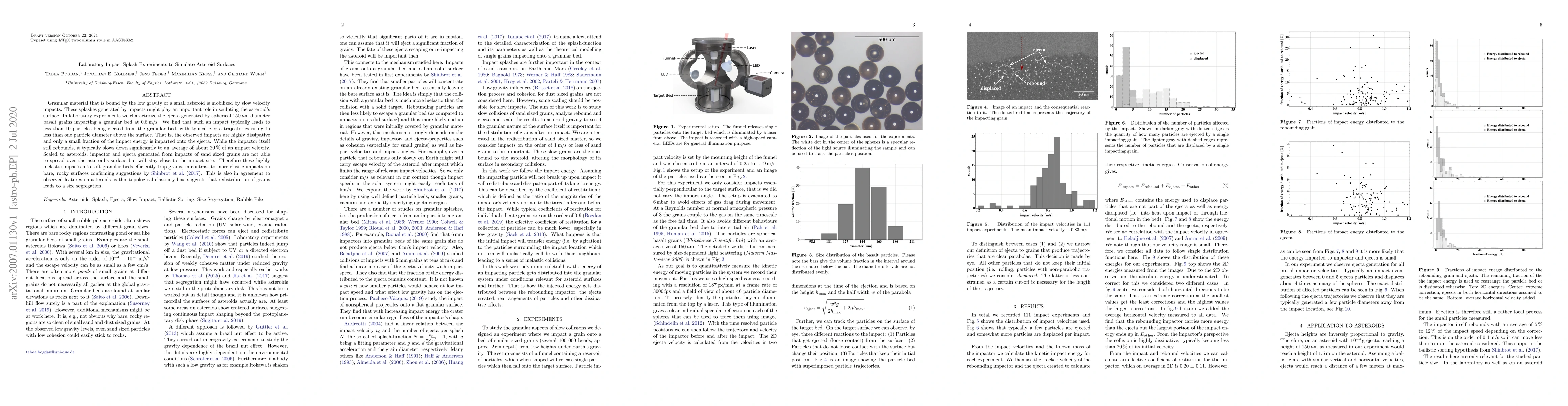 This study investigates granular impacts on low-gravity asteroid surfaces using laboratory experiments with basalt grains. The findings show that slow impacts generate highly dissipative splashes, trapping ejected particles near the impact site and supporting size segregation on asteroids.